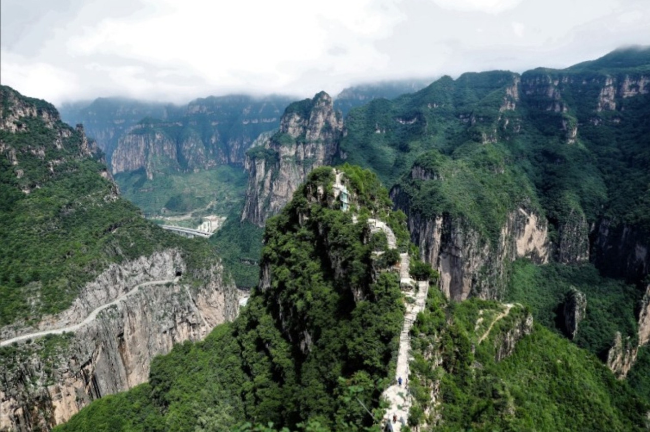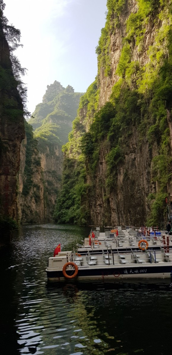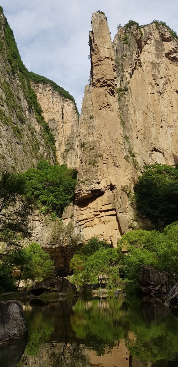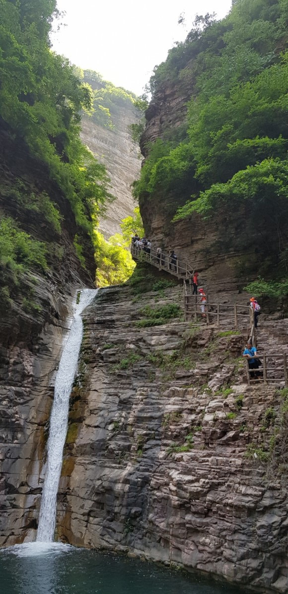 드디어 태항산 대협곡이다. 복숭아나무들이 많이 심어져 있는 입구 도화곡 협곡에서부터 트래킹은 시작된다. 계곡을 따라 고유지명이 붙어 있는 옥빛 폭포와 잔도와 연못들이 줄을 서있다.