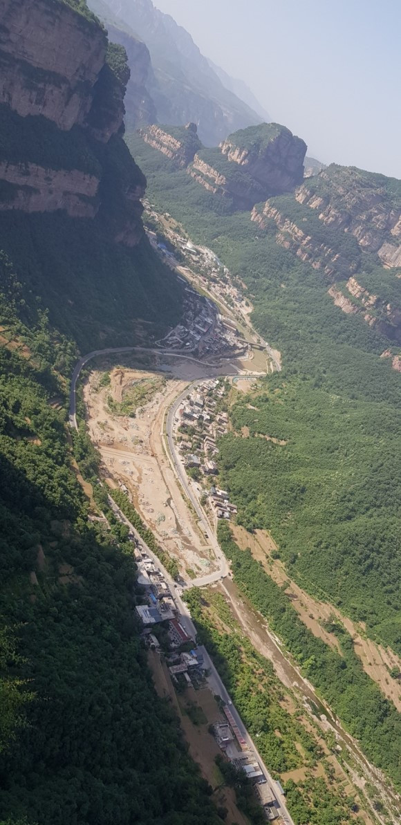 동굴을 나와 이곳 풍경구의 절정을 감상할 수 있는 곳으로 걸음을 뗐다. 케이블카를 내려 아슬아슬한 계단을 오르고 내린 다음 유리로 된 조망대에 올랐다. 산을 휘감아 돌아가는 계곡과 강물이 장관이었다.