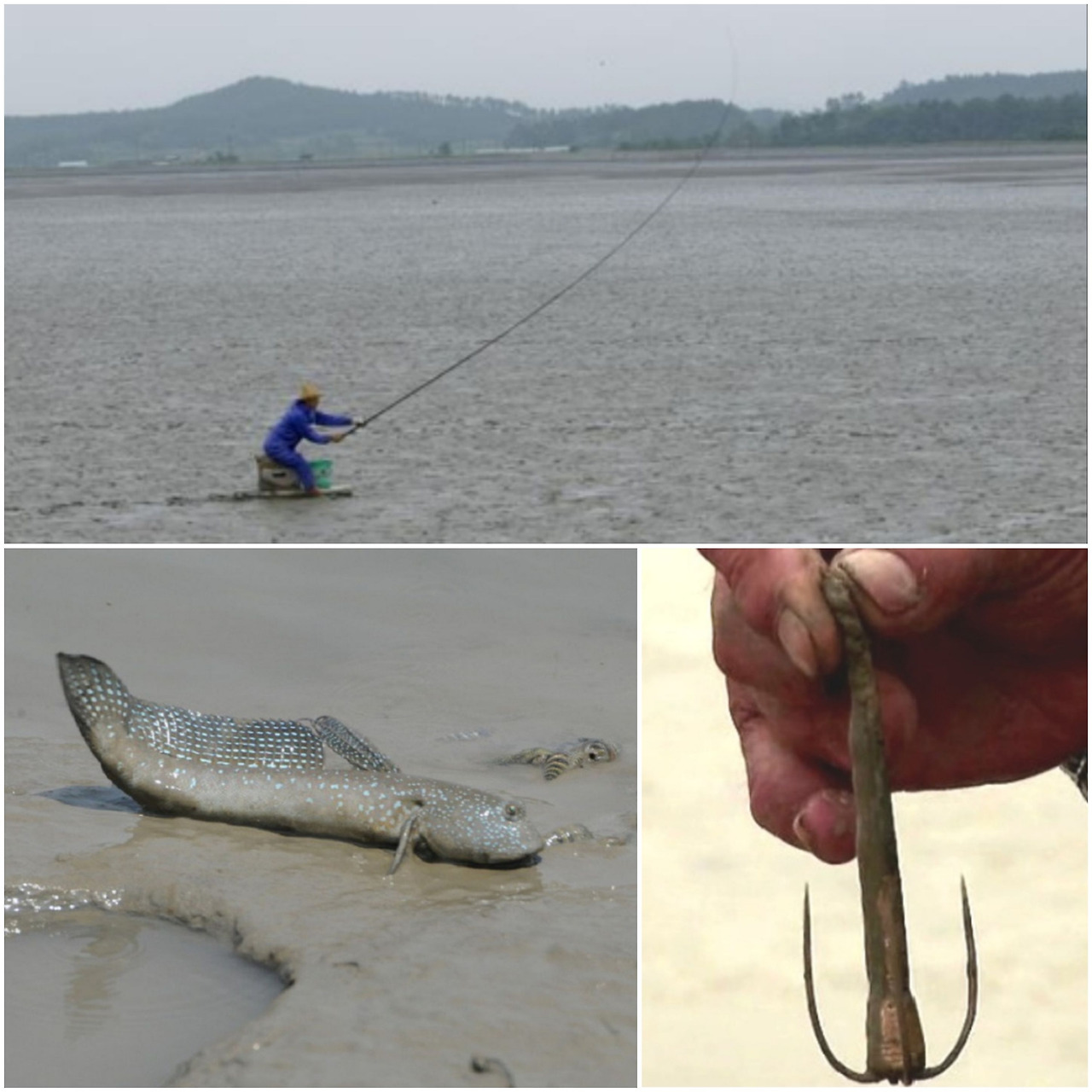 추가로 '짱둥어가 뛰니까 망둥이도 뛴다'는 속담에 나오는 주인공인 짱뚱어 낚시를 소개한다. 7m 길이의 낚싯대와 긴 낚싯줄 끝에 미끼 대신 바늘만 달고서 홀치기를 한다. 짱뚱어 근처에 조용히 낚싯줄을 던져서 기다렸다가 빼꼼 눈만 나와 있는 짱둥어를 향해 낚싯대를 크게 돌려 낚아 챈다. 바늘에 짱뚱어가 걸리면 뽕 소리를 내며 짱뚱어가 뻘 속에서 빠져나온다고 한다. 수십 년 경력의 홀치기 베테랑들은 90% 이상의 투척 성공률로 한 시간에 100 여 마리나 잡아 낸다고 한다. 낚시를 좋아하는 나도 한번 시도하고 싶으나 하루 종일 해서 한 두 마리 잡아 낼까 의문이다. 신기하고 재미난 낚시 방법이다.