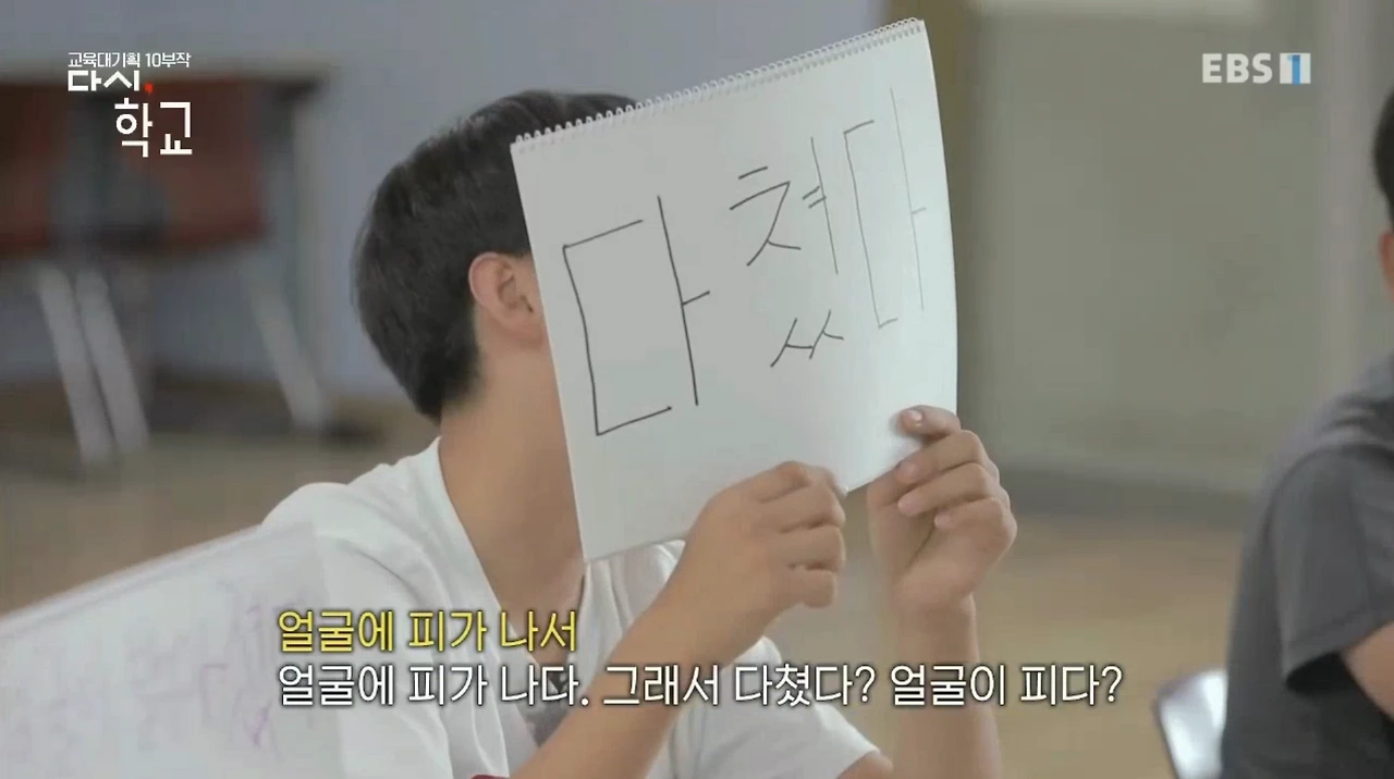 그런데 아이들이 그렇게 새롭게 만들어진 의미를 제대로 이해하지 못한다면 정말 애석합니다. “얼굴이 피다.”는 문장을 얼굴에서 피가 난 걸로 이해하거나, 머리에 서리가 내렸다고 말하니까 “여름인데 왜 서리가 내리지?”라고 반문한다면, 슬프기까지 합니다. (유아가 아니라 중·고등학생 이야기입니다.) (EBS 다큐 프라임, '다시, 학교' 10부).