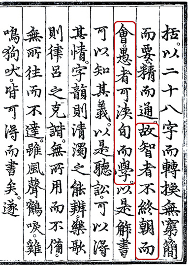 인용한 내용은 훈민정음해례에 실린 정인지 님의 서문 가운데 일부입니다. 안타깝게도 그 서문은 언해되지 않았기 때문에 현재 다양한 번역본이 있습니다. 제가 몇 개의 번역본을 검토해 본 결과, 김슬옹 님의 번역이 가장 적절하다고 판단하여 여기에는 그 내용을 실었습니다. 원본은 “故智者不終朝而會, 愚者可浹旬而學”입니다.