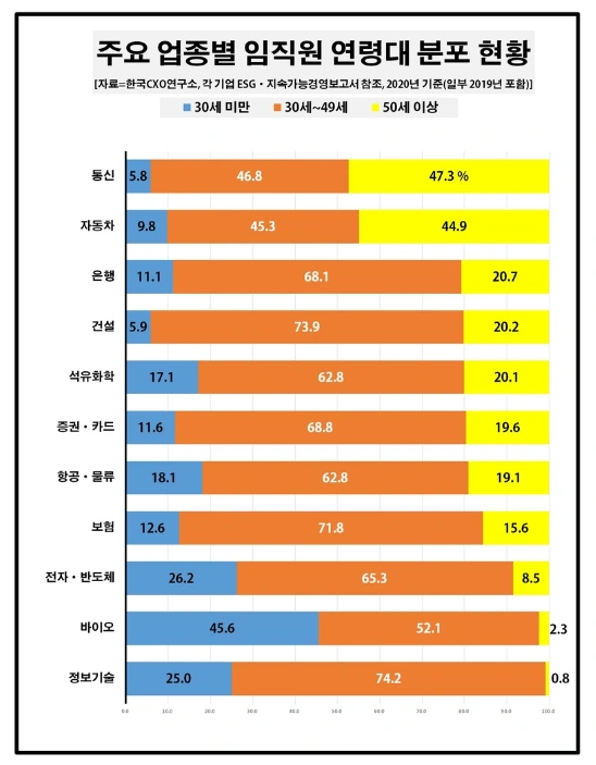 출처: 업종별 임직원 연령대 분포 현황: 한국CXO연구소 제공