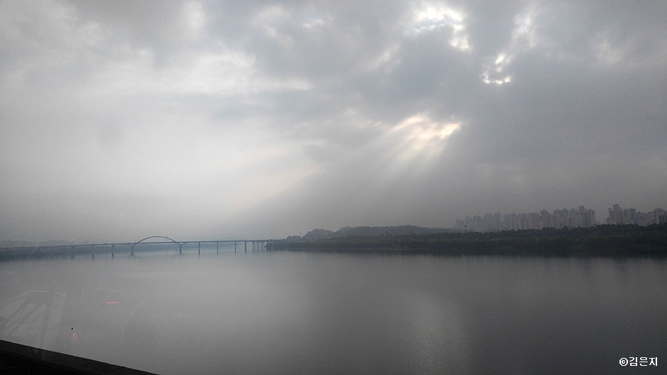 새벽 버스 창 밖으로 보이는 풍경은 뿌옜다.