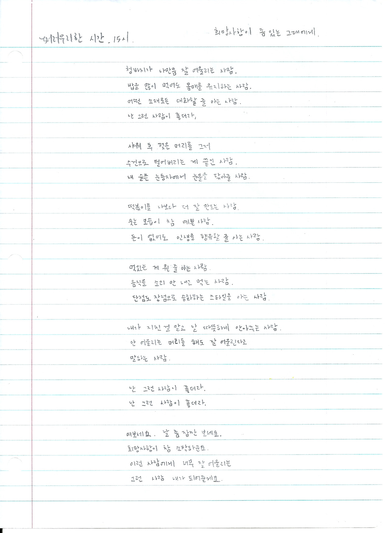 내가 지친 걸 알고 날 따뜻하게 안아주는 사람