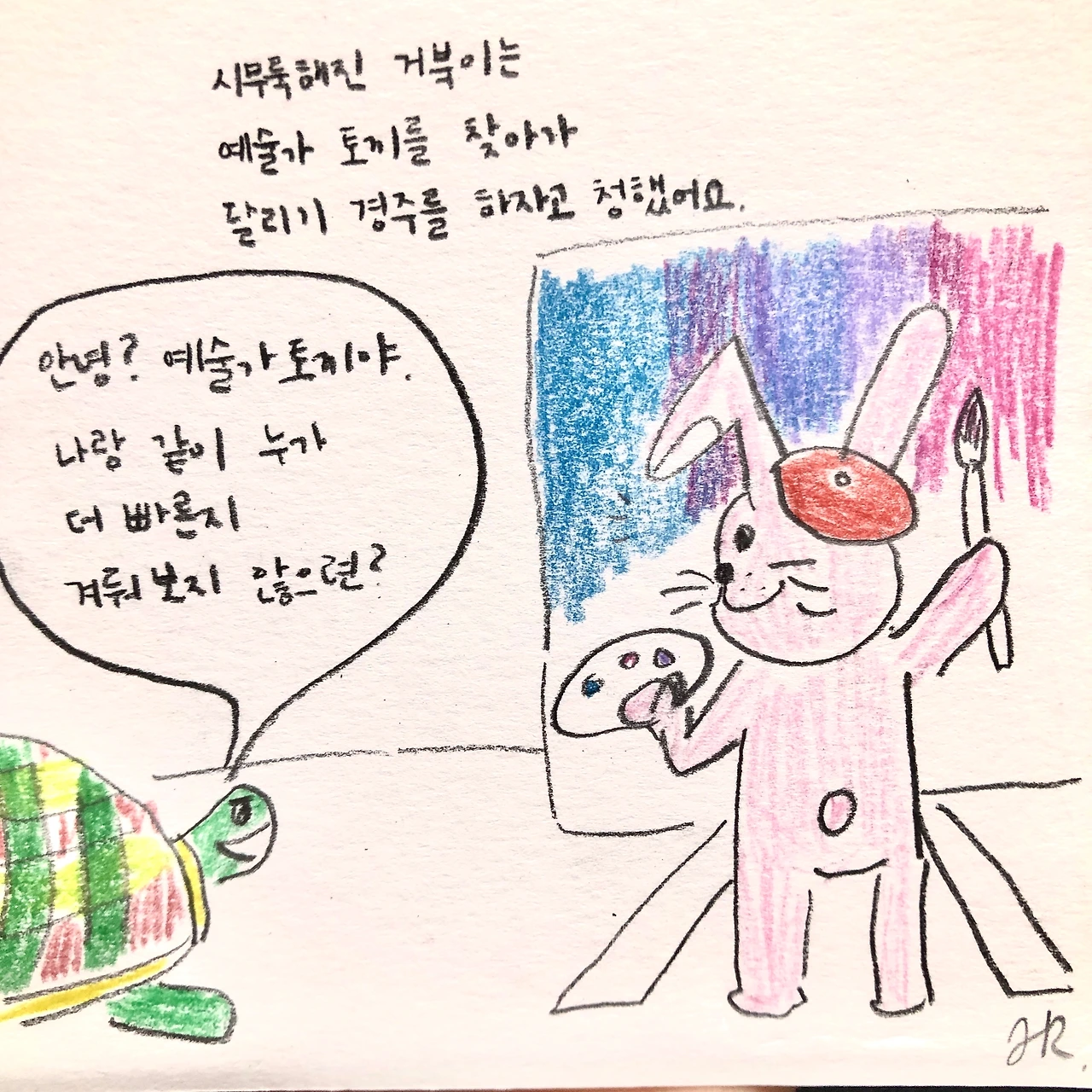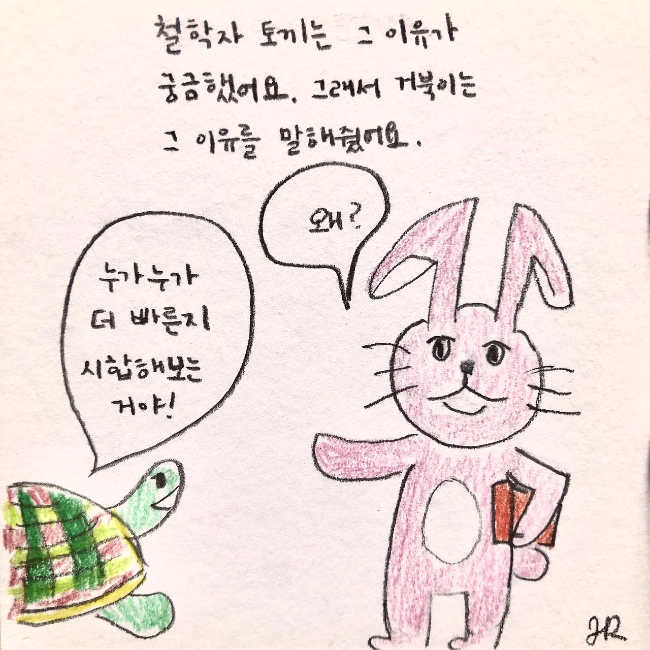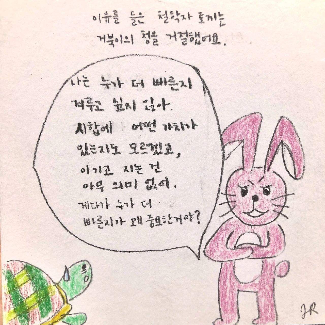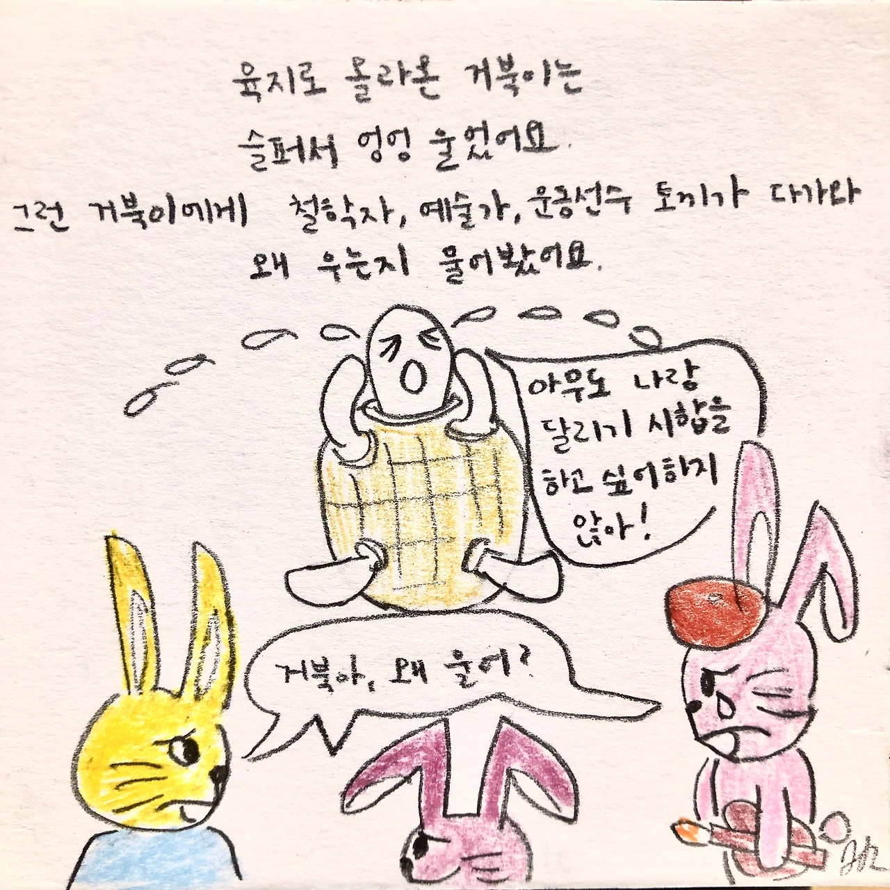 철학자, 예술가, 운동 선수 토끼가 다가와