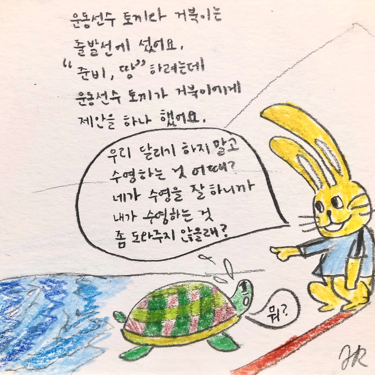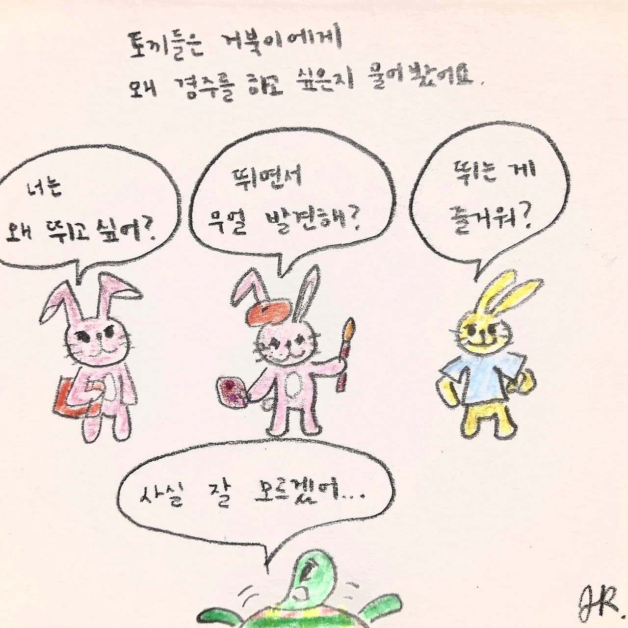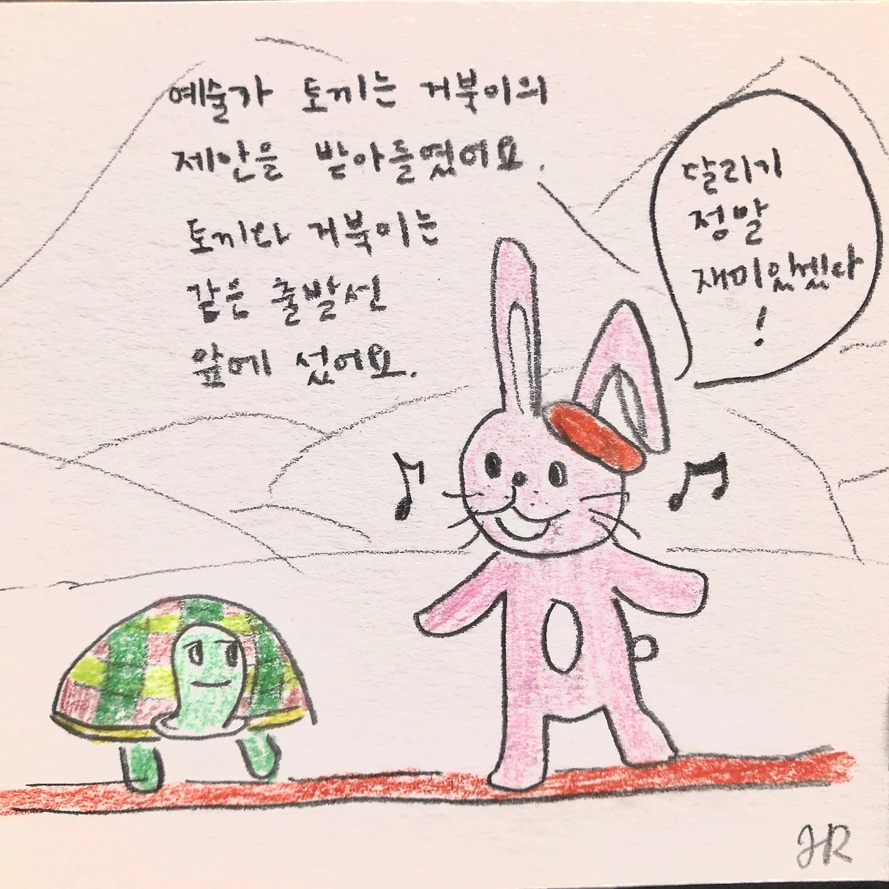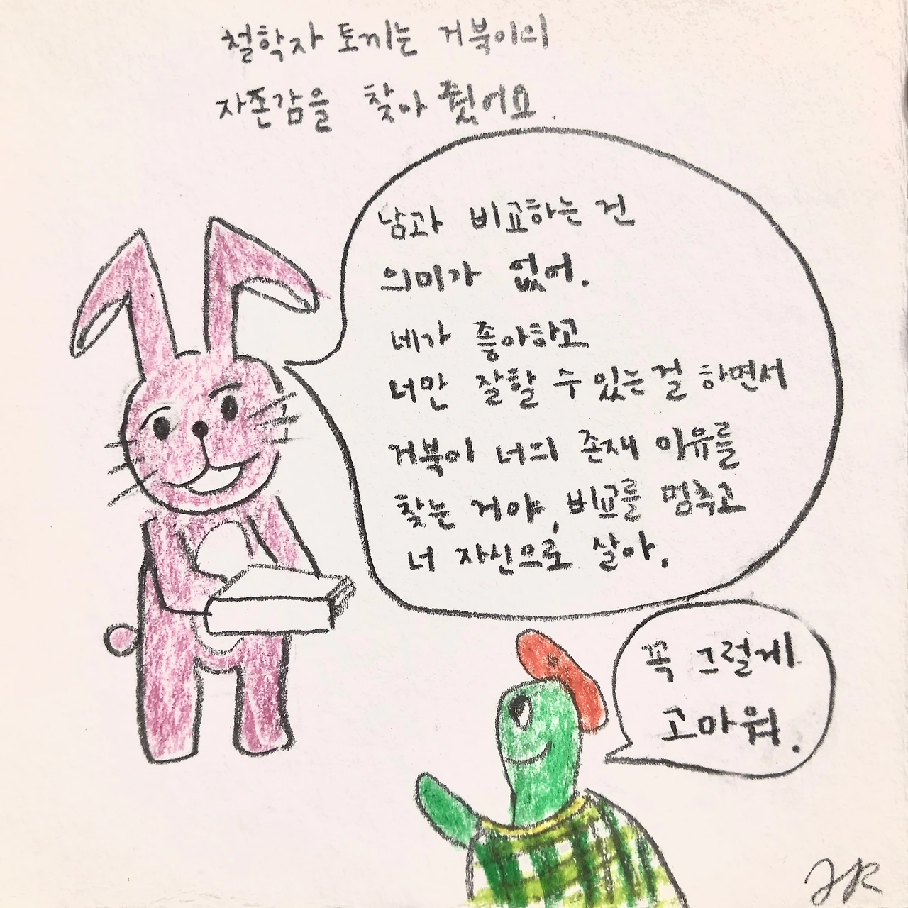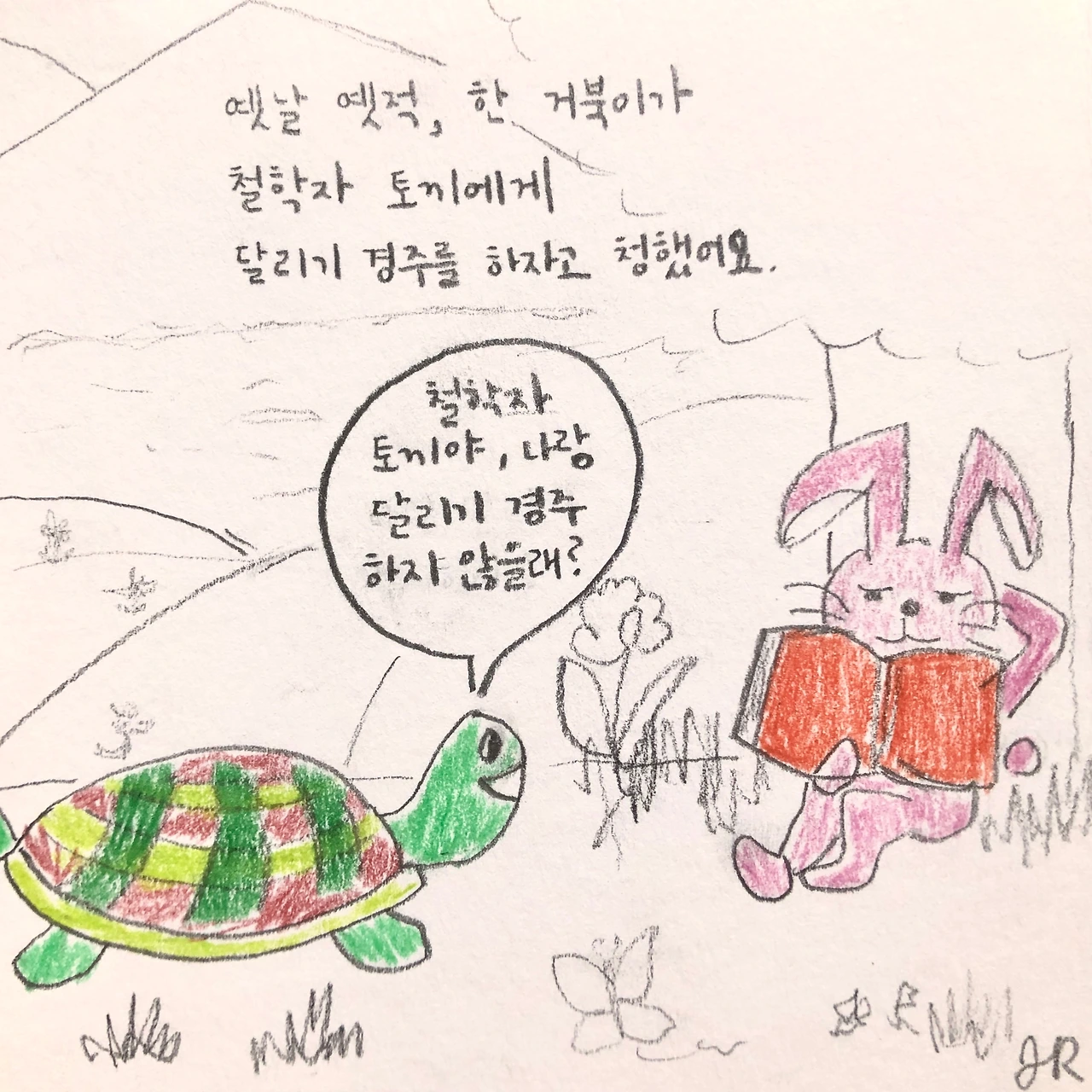 철학자, 예술가, 운동 선수 토끼가 다가와