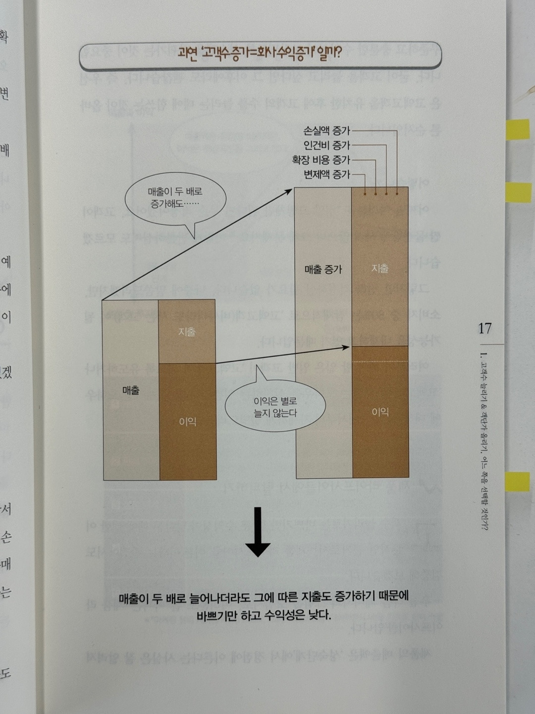 - 책의 저자 : 고객이 증가되면 고정비가 증가 이익 감소로 이어짐. 고액 고객 유치 마케팅을 하면 매출이 오르고 이익이 오를 수 있다.