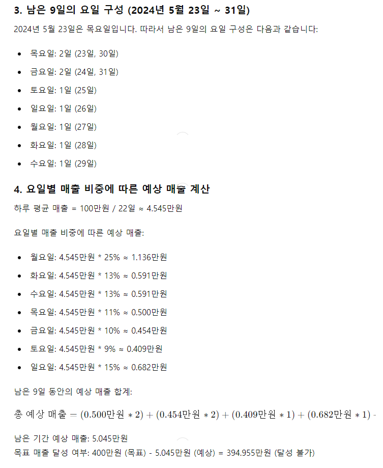 Chat GPT-4o 예상 매출 구하기