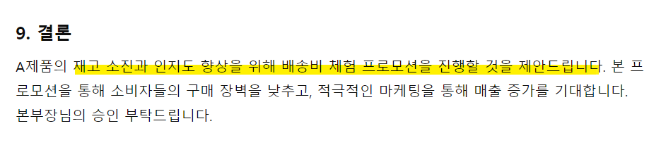 다시, 나의 의도를 넣어 (물류 보관 비용을 고려, 빠른 재고 소진) 다시 질문을 했다.