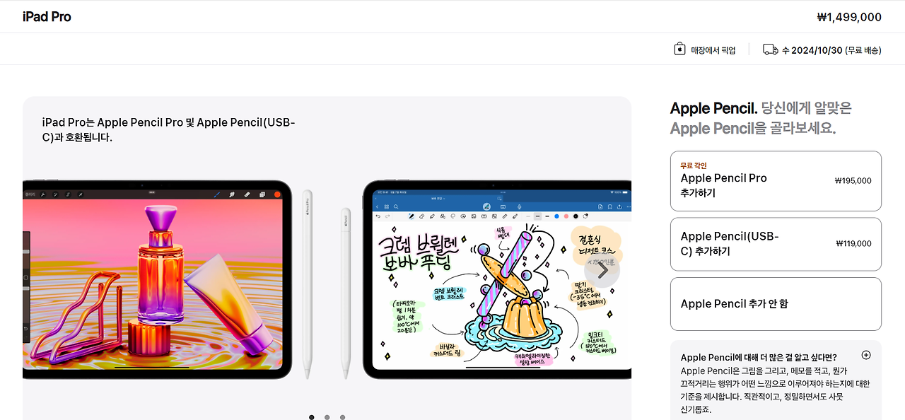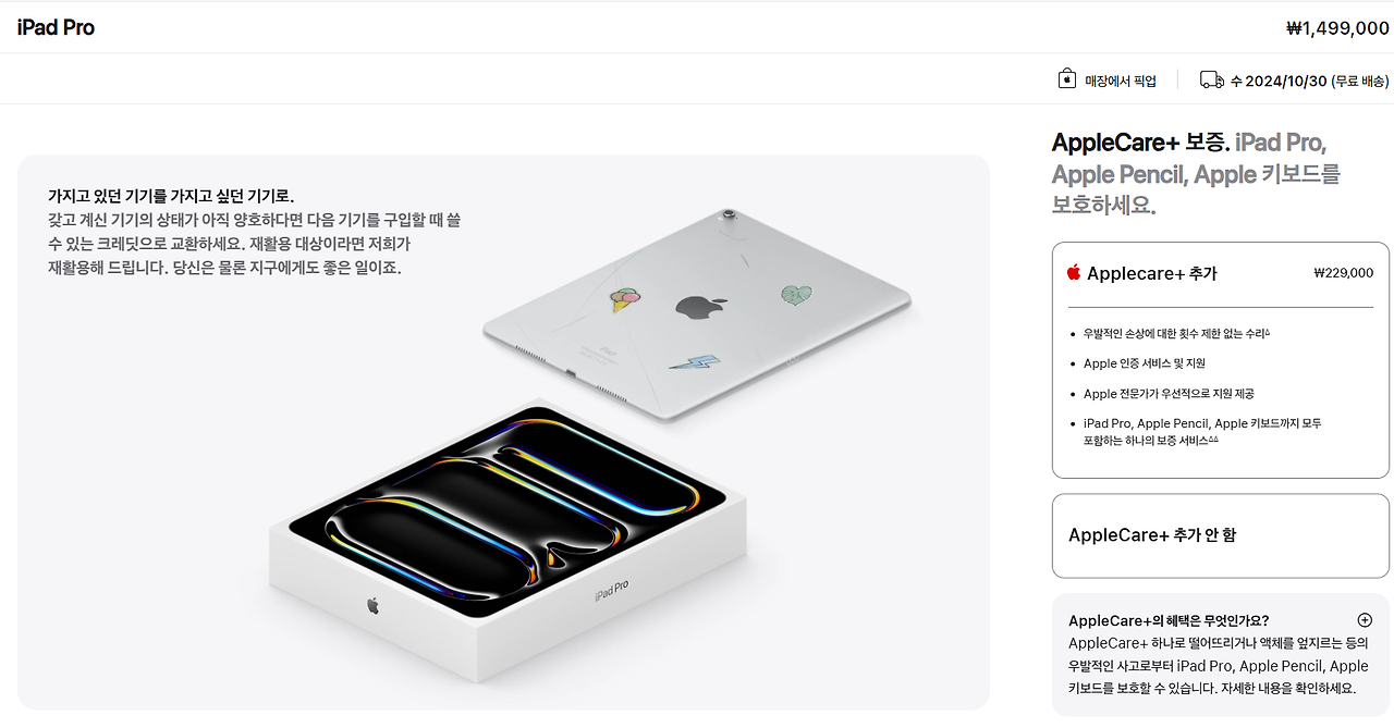 아이패드 애플팬슬, 키보드, 애플케어 제안