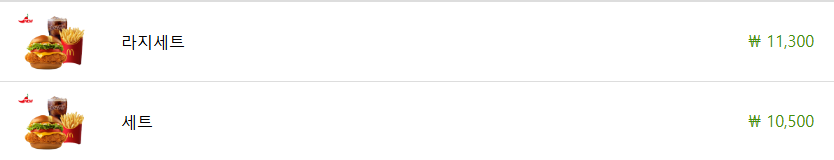 2. 맥도널드 햄버거 단품 구매 보다 세트 구매 더 저렴.