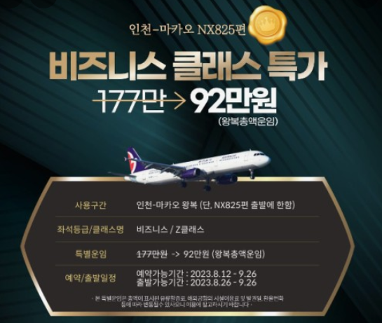 (동일한 항공편 좀 더 편한 좌석과 좋은 서비스 제공)