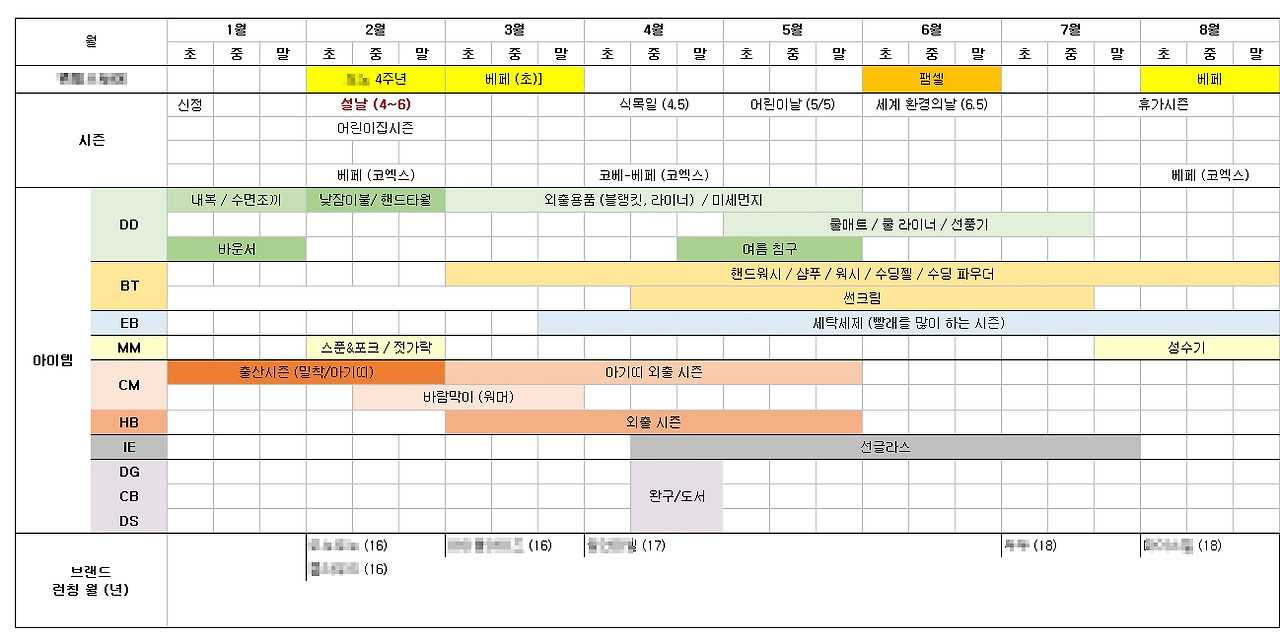 아래 계획표는 출산육아용품 회사를 다녔을 때 세웠던 연간 계획표다.