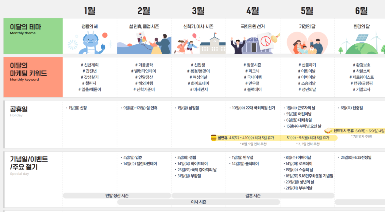 미리 연간 플랜 세워 두고, 콘셉트도 관리하면 정말 찍어내듯이 이벤트 프로모션을 기획할 수 있다.