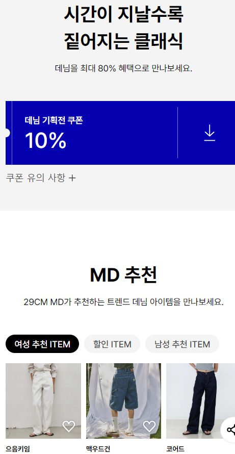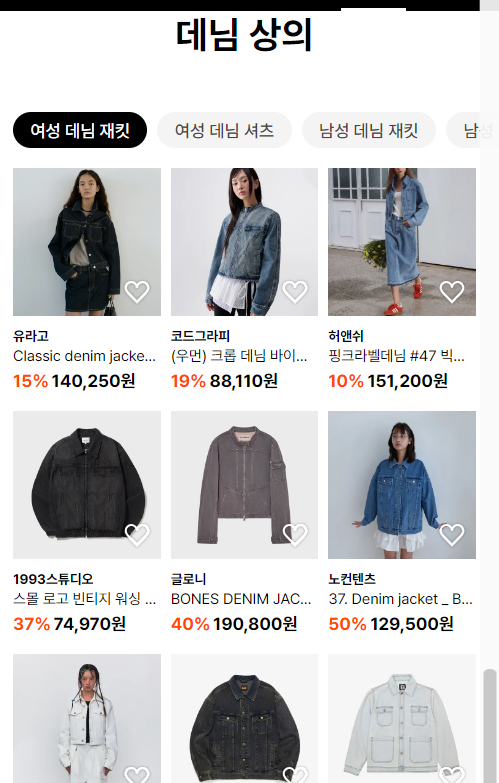 맨 위에 노출되지 않았고, 심지어 데님 상의에도 없었다...