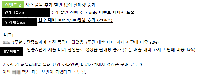 (사례 2) 이벤트 페이지 내 추가 할인 없이 상시 할인으로 진행했을 때 판매량 증가