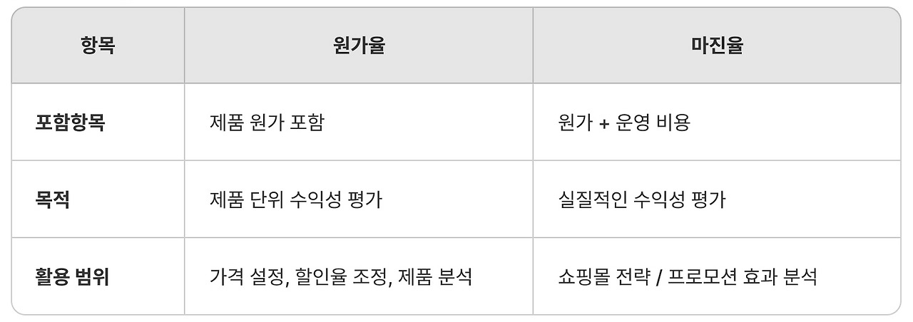 원가율 마진율 구하는 공식 / 차이점