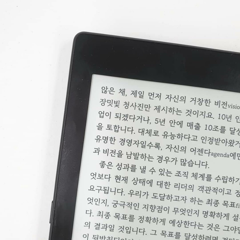 가장 인상적인 점은, 이전에 쓰던 페이퍼 프로보다 속도가 무척이나 빨라졌다는 점이다. E-ink 특성상 어느 정도 속도의 손해는 감수해야 한다지만, 이 정도 속도라면 페이지를 넘기는 데 있어 조금의 답답함도 느끼지 않아도 된다. 오른쪽에만 있는 물리키는 화면을 돌림과 동시에 왼쪽에 위치하게 된다. 텍스트는 어느새 제자리다. 양 쪽에 물리키가 있는 페이퍼 프로와 비교해도 기능적인 불편함이 전혀 없다.