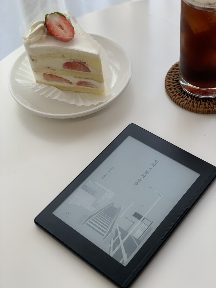 그런 관점에서 이번 6인치 리디페이퍼는 내게 안성맞춤이었다. 한 손에 쉽게 들 수 있는 사이즈와 무게인데다가 6인치 화면에 가득찬 활자를 읽는 맛이 있다. 점퍼 주머니에 쉬이 들어가는 사이즈이기에 언제 어디서든 꺼내기에 용이하다. 달리 말해, 독서를 위한 준비과정이 비약적으로 절약된다고 할 수 있다. 지하철이건, 카페건, 잠시 잠깐 누군가를 기다리며 서 있는 어느 공간에서건 말이다. 덕분에 시간을 좀 더 알차게 쓸 수 있겠다라고, 괜히 한 번 더 다짐하게 된다. 외출할 땐 무조건 챙기게 된다. 책 바리바리 가방에 욱여넣지 않아도 되기 때문이다. 외출해서 무엇을 읽을지 고민할 필요도 없으며 그 시간마저도 절약할 수 있다.