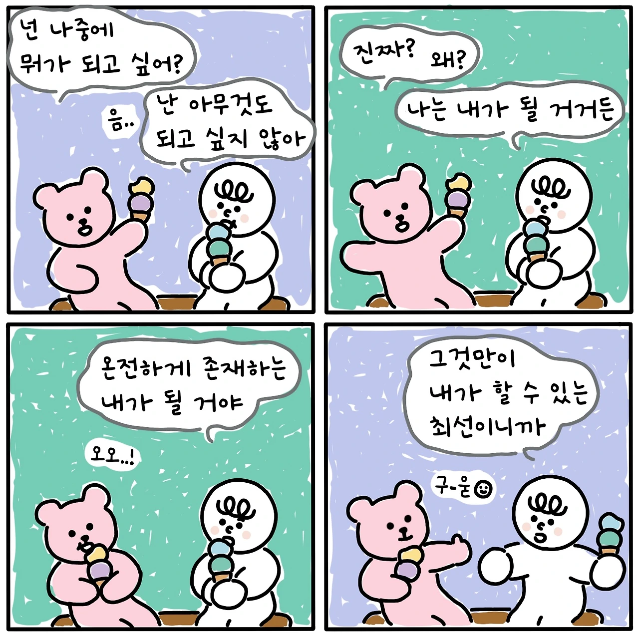 아무것도 되지 말자. 그 누구도 되려 하지 말자. 학창 시절 「남이 원하니까 나도 원했던」 꿈의 탐함부터 20년이 넘는 시간 동안 내 허물을 벗고 다른 무엇이 되려고 버둥거렸으면 됐다. 이제 그만 안달과 책망의 땅에서 넘어오자. 남은 시간은 세상에서 '좋은 삶'이라고 알려주는 땅이 아닌 그 자체로 내게 의미 있는 땅을 찾아 가꾸어보자.