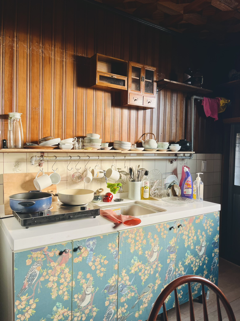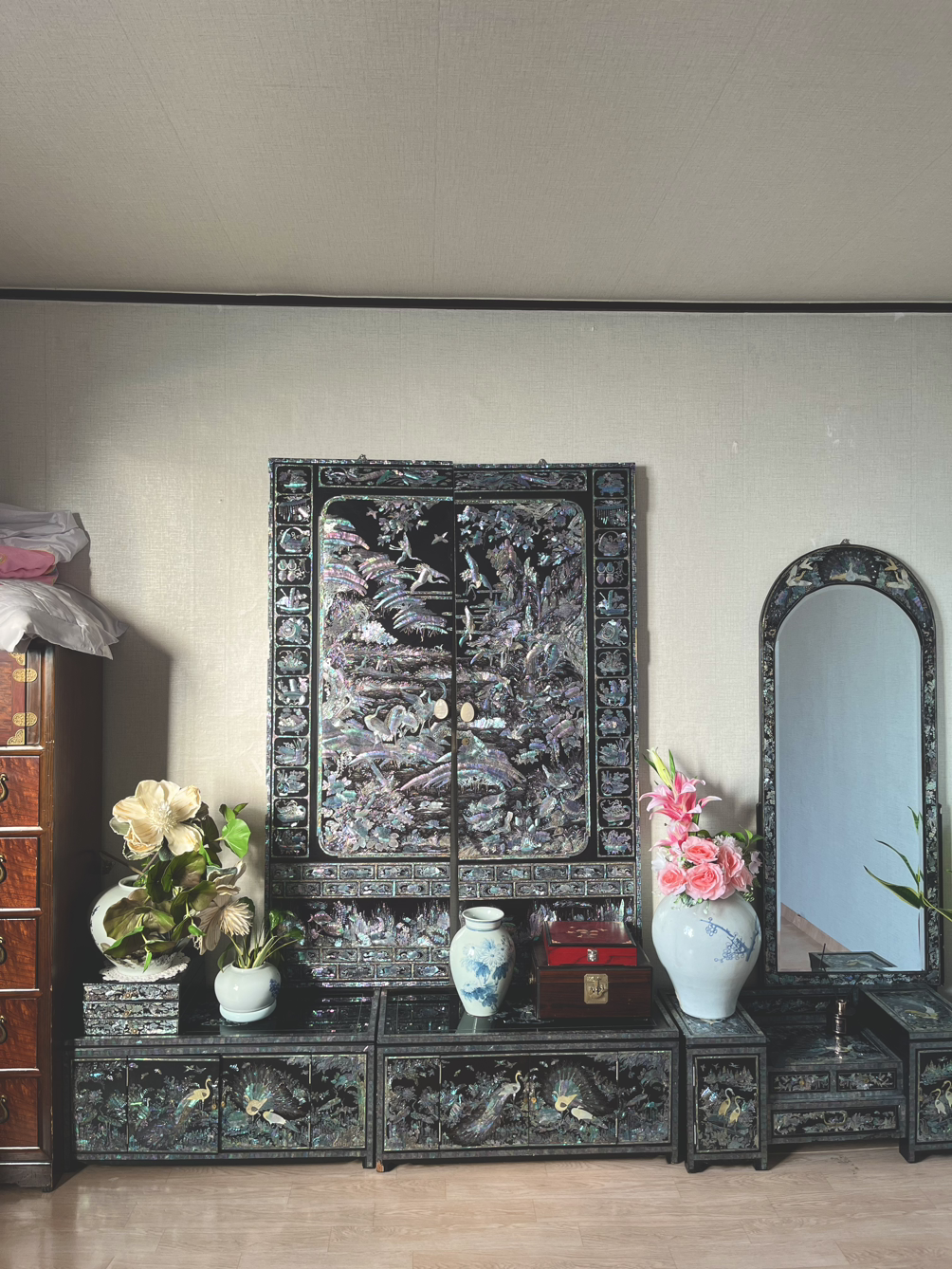가입한 지 얼마 안돼 마침 정모 날짜가 잡혔다. 단김에 소뿔 빼듯 큰 맘먹고 신청을 하고 준비 모드에 돌입했다. 준비해야 하는 몇 가지 항목이 있었는데 첫 번째는 대관한 스튜디오의 레트로한 무드에 어울리는 옷을 입고 가야 했다. 스튜디오는 영화 「써니」 나 「응답하라 시리즈」에서 볼 듯한 80년대 후반 '좀 사는' 가정집 느낌이었다. 응팔의 덕선이 집보다는 정봉이네 집이 연상되었으니까. 큰 규모의 거실 한쪽에는 풍금이 맞이하고 있었고 민트색보다 옥색이란 낱말이 어울리는 고운 패턴의 주방 싱크대, 안방으로 추정되는 곳에 '그 시절을 상징하는' 자개 장식장이 반짝이며 자리하고 있었다. 사진들을 넘겨볼수록 구수하고 정이 넉넉한 할머니 집이 연상됐다.