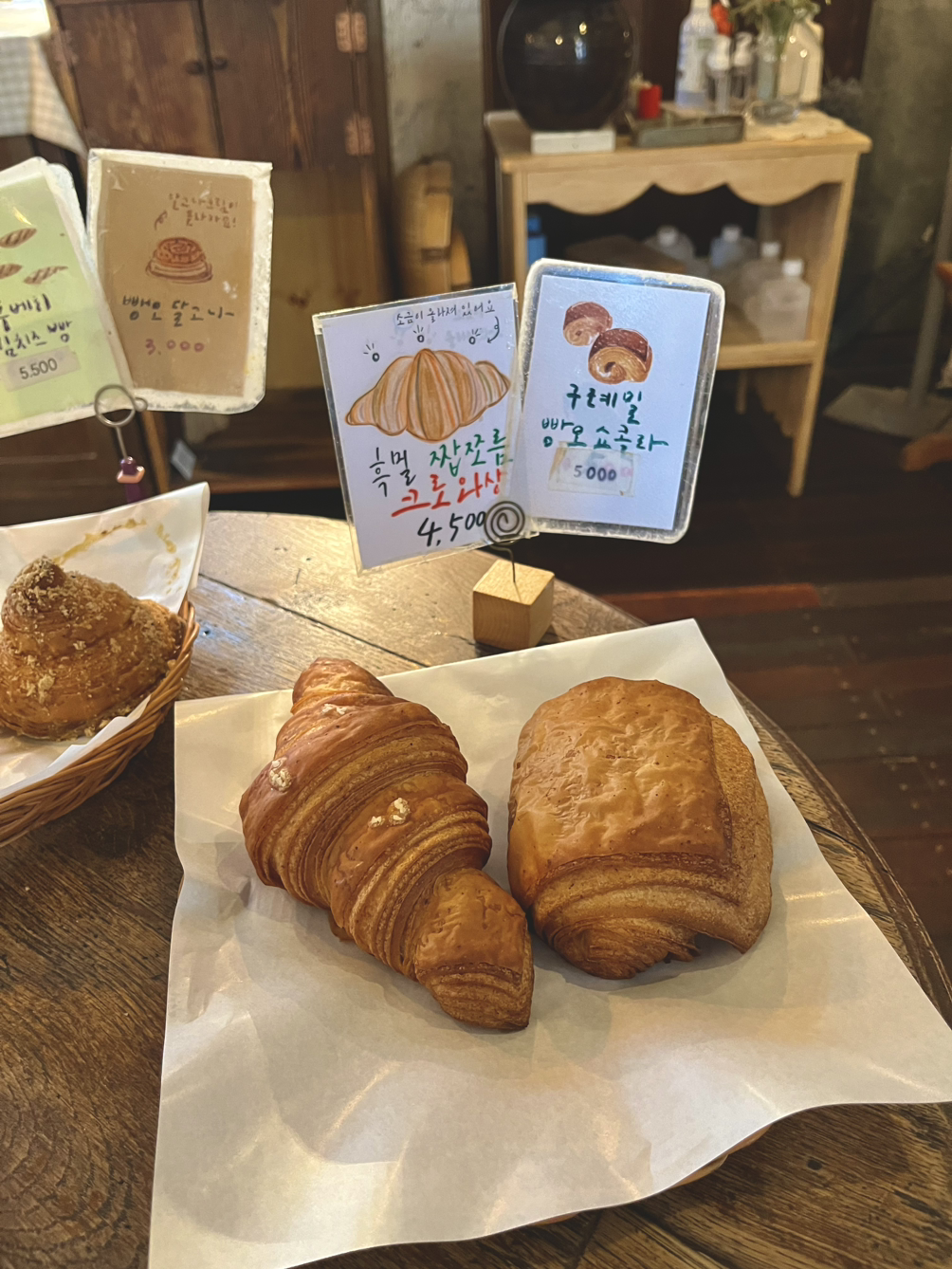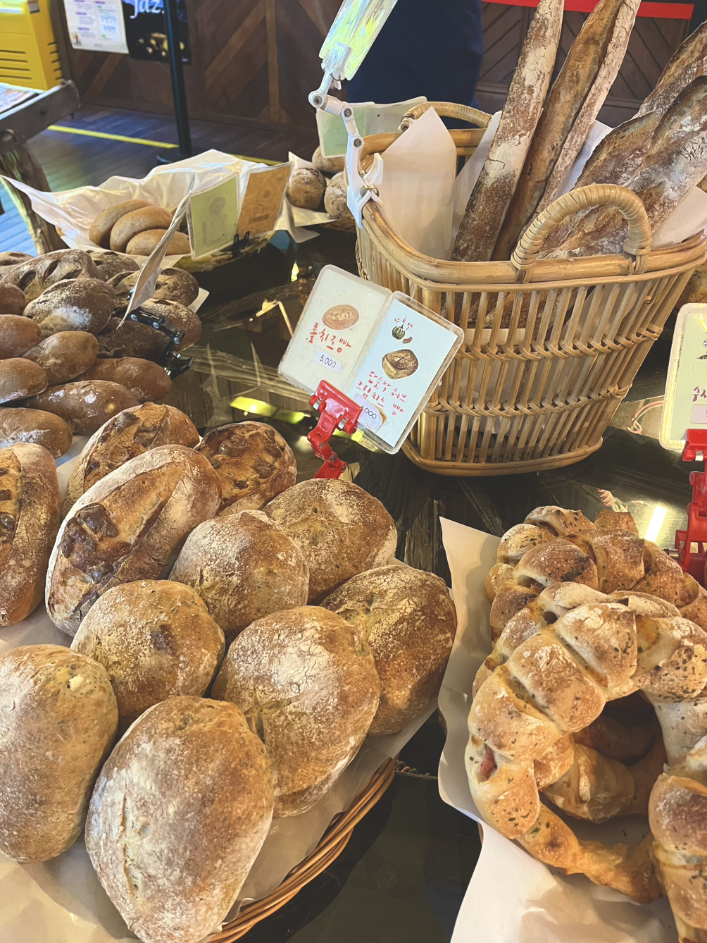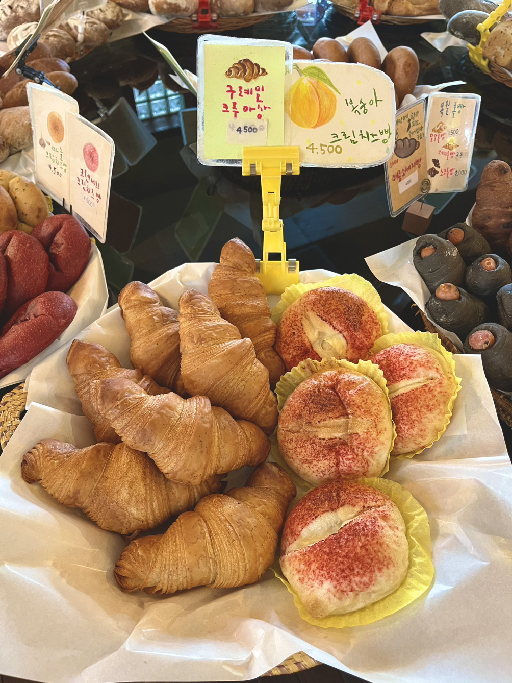 초록으로 감겨 지낸 이틀간의 하동을 떠나 버스를 타고 구례로 넘어왔다. 구례는 하동보다는 조금 더 새침데기 소녀 같은 이미지였다. 도로 차선이 많아졌고 카카오 택시를 부를 수도 있었다. 구례에는 오기 전부터 꼭 가보고 싶었던 빵집 하나가 있었다. 첫날 방문하고 마지막 날 기차 타기 전 또 들를 정도로 언니와 내 마음을 모자란 구석 없이 흡족시켰다. 재료 본연의 맛을 해침 없이 잘 살린 구수하고 담백한 빵 맛에는 알고 보니 막대한 비법이 숨어있었다. 사장님의 아버지가 구슬땀으로 키운 구례 토종밀과 이 지역에서 생산되는 팥, 감, 밤 등의 재료들을 적극 활용해 만든 점이었다. 자연과 사람이 어울려 만들어내는 아름다운 앙상블의 힘을 맛볼 수 있는 복이 따로 없었다.