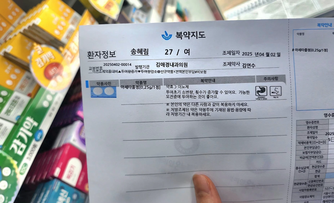 검진실로 들어가자 의사 선생님은 방긋 웃으며 약 이름이 적힌 메모지를 흔들었다.