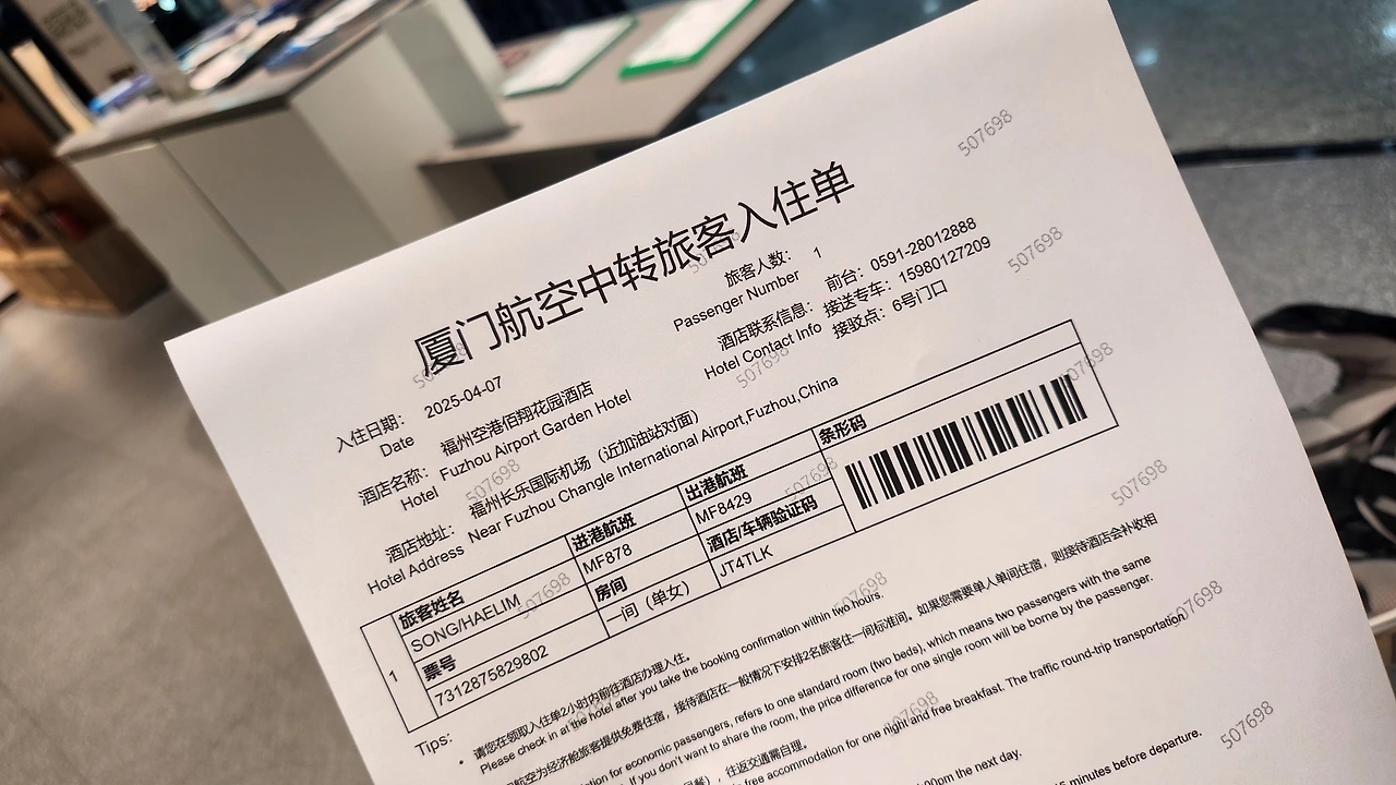 푸저우에서 9시간 새벽 경유, 근데 무료 호텔이라고?