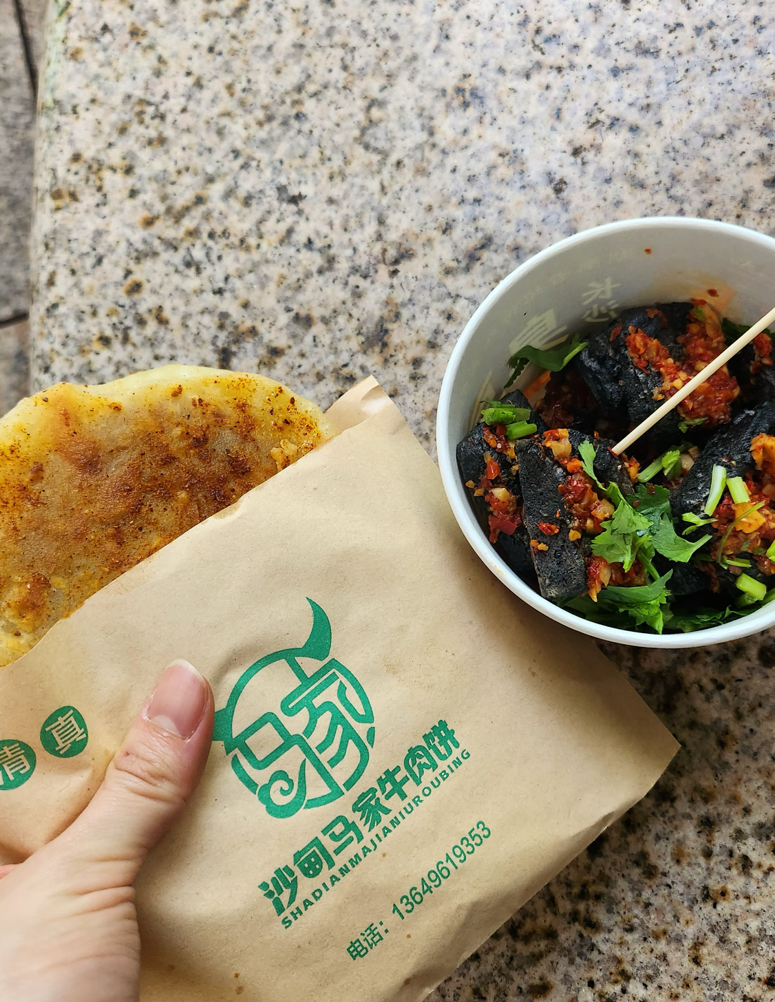 취두부(臭豆腐)와 다진 고기가 들어간 빵인 니우로우삥(牛肉饼)을사서 아무 데나 걸쳐 앉았다.