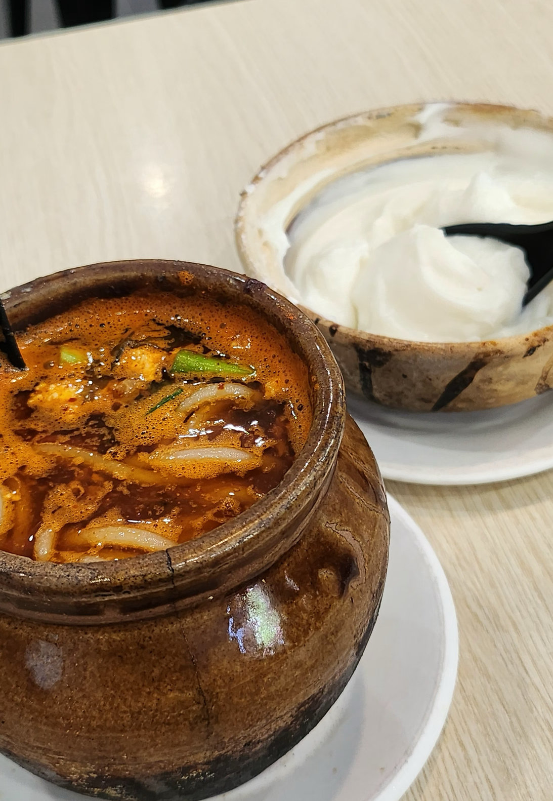 취두부 미씨엔은 항아리 모양 뚝배기에 담아 나오는데 취두부 때문인지 큼큼한 향이 났다.