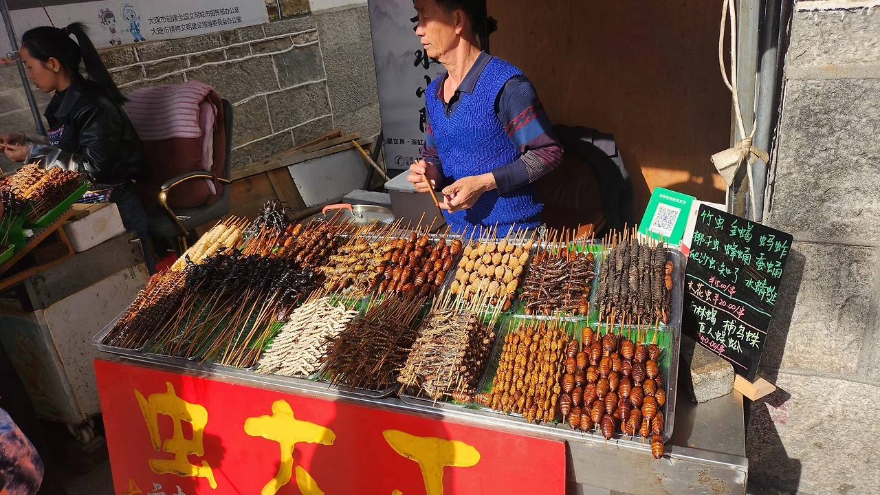 중국 혐오 음식 중 하나인 곤충 꼬치. 다만 실제론 윈난을 여행하면서 이런 꼬치를 파는 상인은 두 세명에 불과했다.