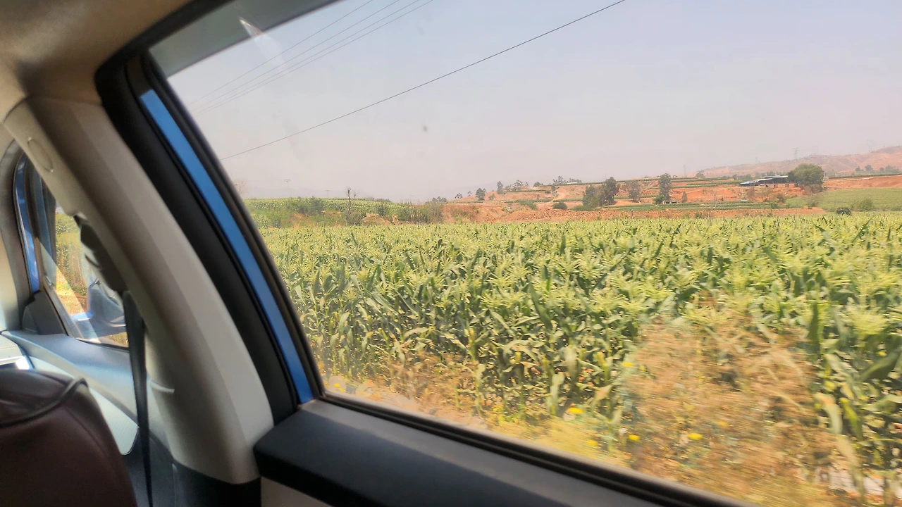 택시 창가로 내다본 원모현은 죄다 홍토지다.