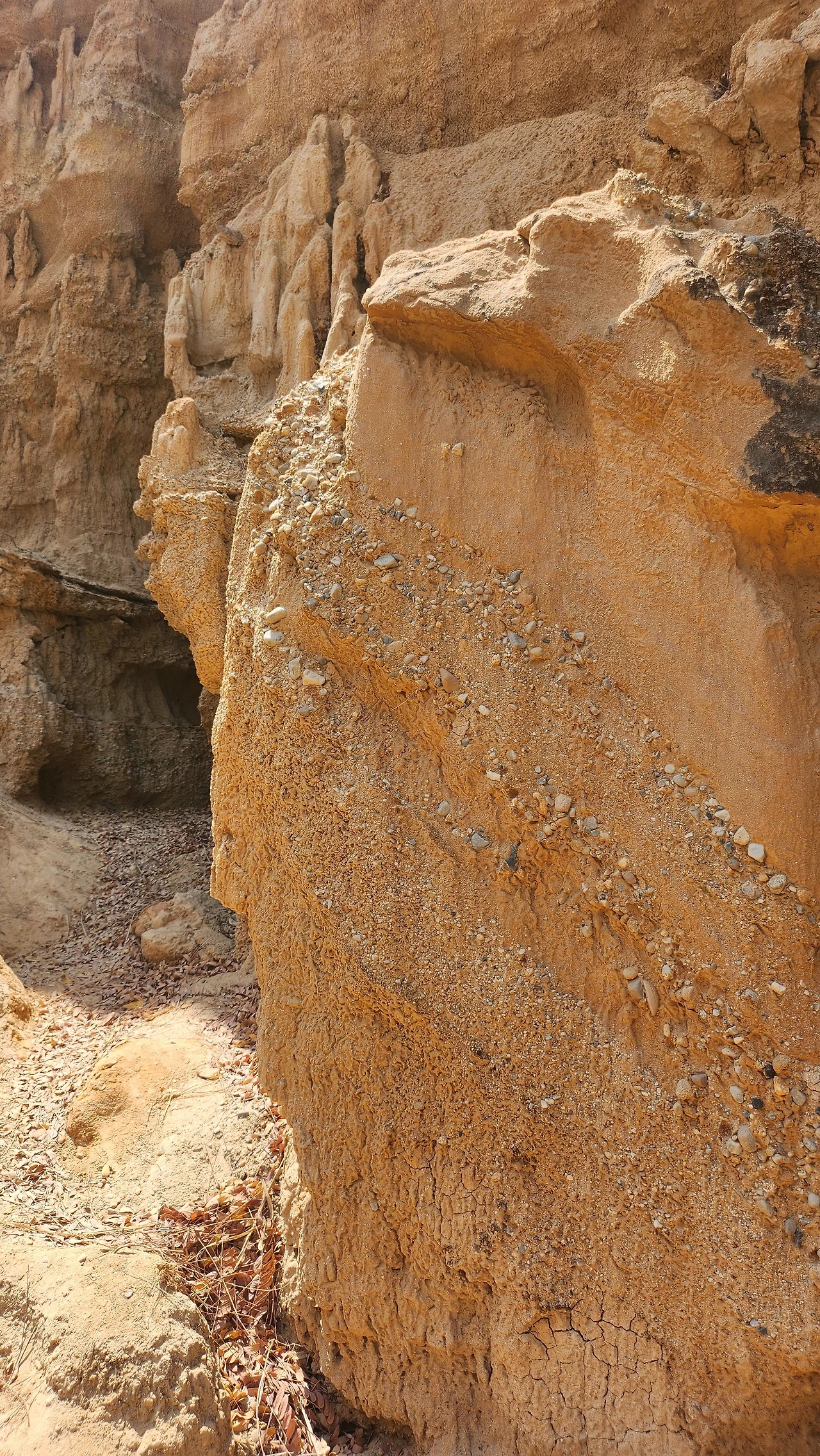 어떤 기둥은 다양한 자갈이 하나의 물결을 이루고 있어 고대의 바다를 상상케 한다.