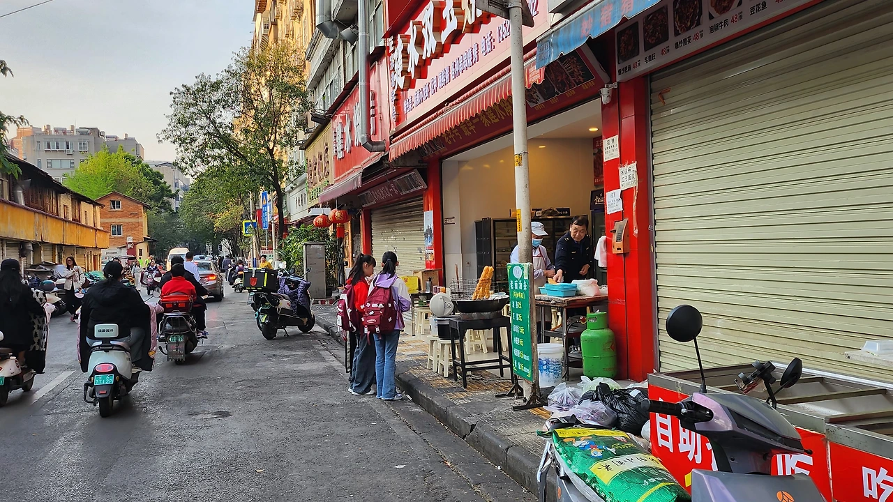 새벽 내내 모기와 씨름하느라 퉁퉁 부은 눈으로 기상했다. 4월 초인데도 체감은 한여름이다. 덕분에 이른 체크아웃을 하고 거리로 나섰다. 중국 어디 지역을 가든 아침이면 거리마다 아침 식사를 파는 노점상으로 즐비하다. 만두와 찐빵부터 콩국, 옹심이 죽, 찐 계란, 니우로우삥(牛肉饼) 등 간편하고 빠르게 먹을 수 있는 음식들이다. 주문하자마자 만들어 따끈따끈하다. 가격도 대게 10위안을 넘지 않는다. 그 덕에 바쁜 직장인들도 빵이나 옥수수 등을 들고 출근을 재촉하는 모습은 쉽게 볼 수 있다.