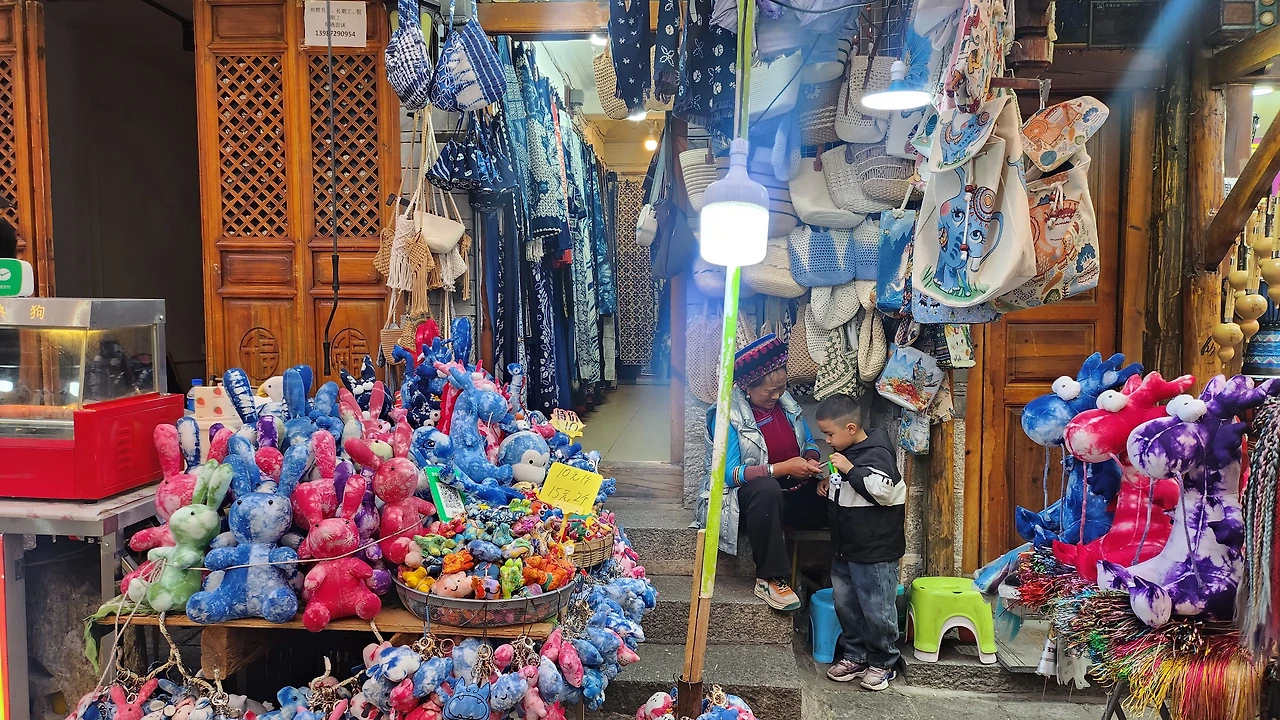 그래도 다리는 쿤밍보단 소수민족의 흔적이 많이 남아 있다. 파랑과 하양으로 물들여진 직물들을 보면 그렇다. 옷이나 가방, 작은 인형, 귀걸이 등도 같은 색상으로 물들여져 있다. 나시족의 맑고 깨끗함을 나타내는 청청백백(清清白白)의미를 담고 있다. 일부 직물 상점에 들어서면 주민들이 손수 천을 물들이는 모습도 구경할 수 있다. 나시족은 화살 쏘는 문화가 있었던 지 전통 활을 이용한 양궁장도 곳곳에서 발견할 수 있다.