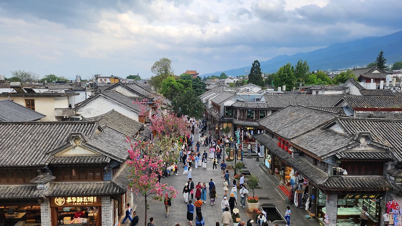 쿤밍이 화려했다면 옆 동네 다리는 소박한 동화 마을 같은 곳이다. 건물들은 대게 낮고 하얗게 페인팅돼 있다. 봄을 알리듯 만개한 꽃들은 하늘을 분홍색으로 물들이고 있었다. 숙소로 들어서는 입구에서 소수민족 여성들이 눈에 띄었다. 그들은 머리를 꼬아 동 그렇게 올리고 흰색 벙거지 모자를 쓰거나 보라색 천으로 감싸 맸다. 이들 사이 오가는 대화는 영 알아듣기 힘들다.