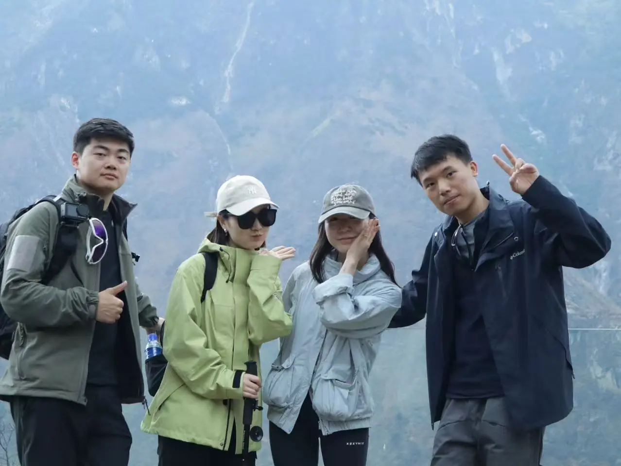 그 남자의 이름은 '지하오'. 후난성 출신으로 한 살 아래 여동생 '씬이'와 함께 등산 중이라고 했다. 나머지 셋은 후베이성에서 온 '지아이', '준지에', '하오위'. 직장 동료 사이로 그중 한 명이 최근 퇴사해 작별 여행 삼아 호도협에 왔단다. 알고 보니 그 다섯 명도 같은 일행이 아니라, 모두 등산하던 중 만난 사이였던 것.
