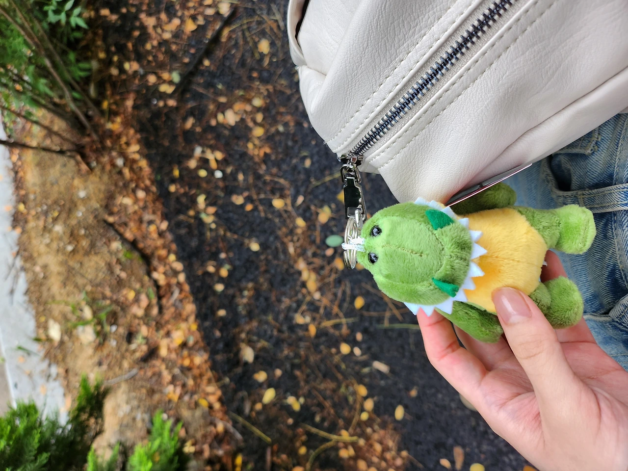 보송보송한 초록 솜털이 달린, 작은 공룡 인형이었다.