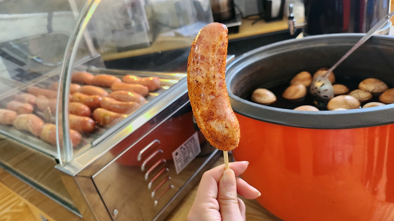 하나씩 사서 털썩 앉았다. 역시, 고생 끝에 먹는 한 입이 최고다.