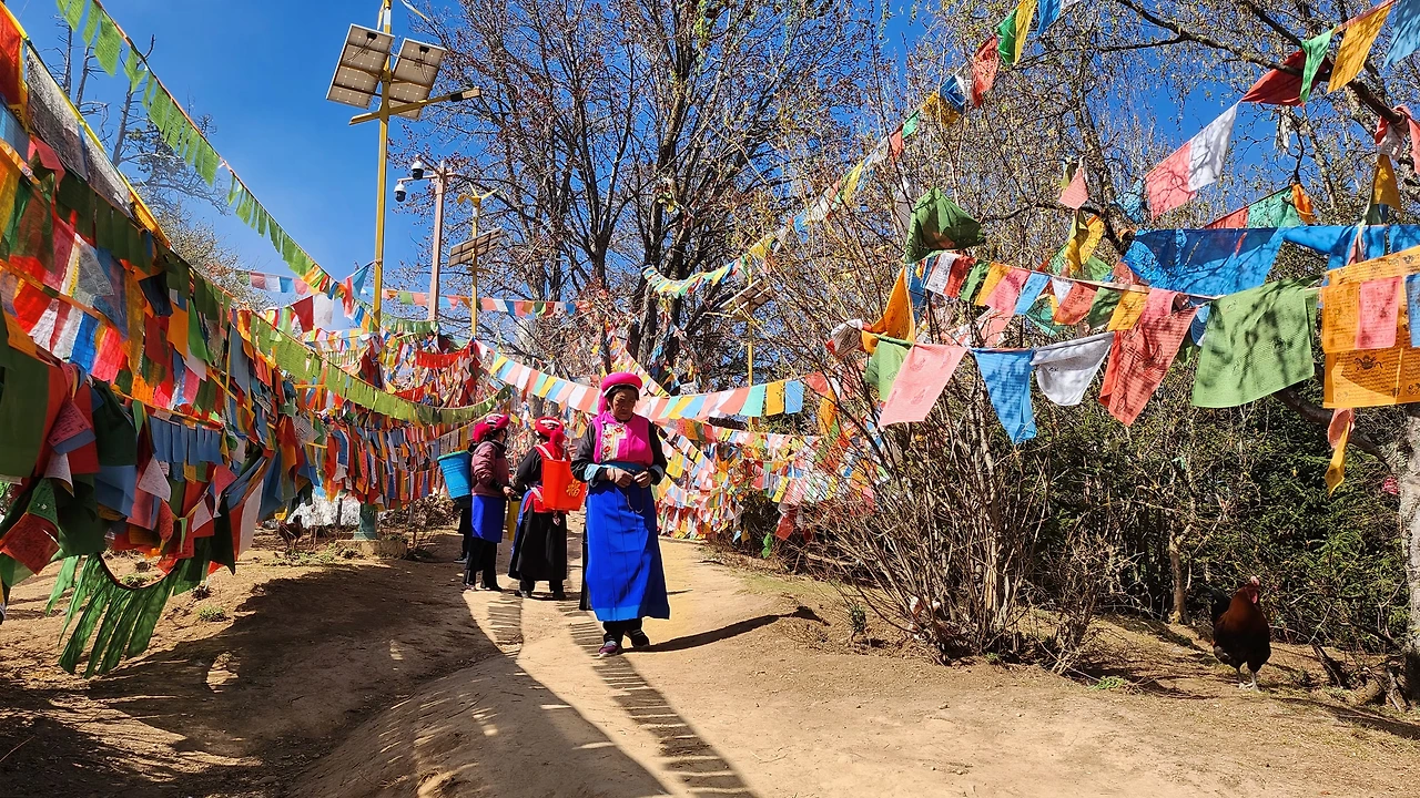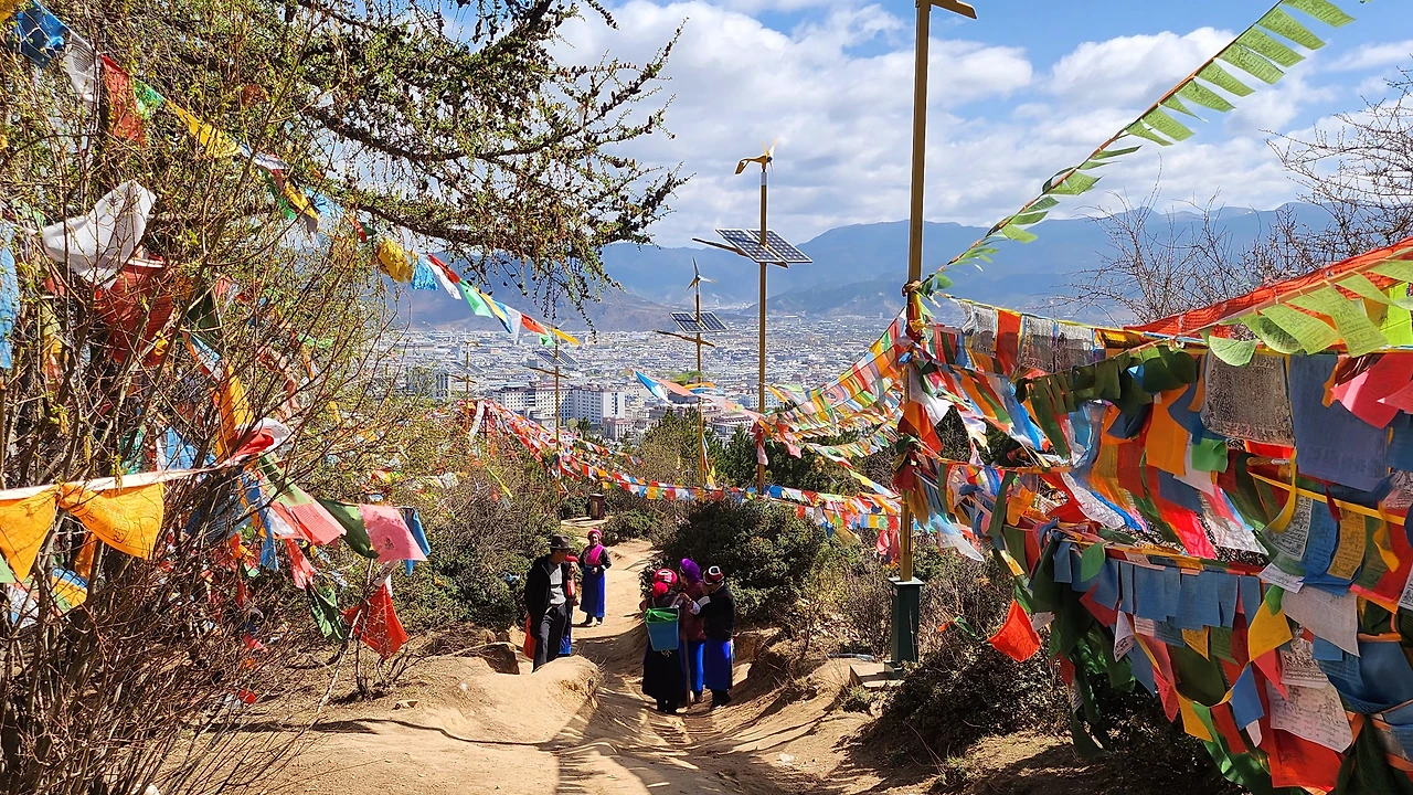 샹그릴라 티베트 불교 사원. 대형 사찰보단 규모가 작지만 현지인들에겐 매우 소중한 기도 공간입니다. 전설에 따르면 한 스님이 절을 지을 자리를 찾던 중 하얀 닭이 알을 품고 있는 자리를 발견하고, 이를 신성하게 여겨 절을 세웠다고 합니다. 오색빛깔의 타르초가 푸른 하늘 아래 아름답게 펼쳐져 있으며, 길고양이처럼 돌아다니는 흑돼지와 닭들을 구경할 수 있습니다. 오전에 방문하면 티베트 주민들의 아침 의식을 체험할 수 있습니다. 입장료는 무료입니다.