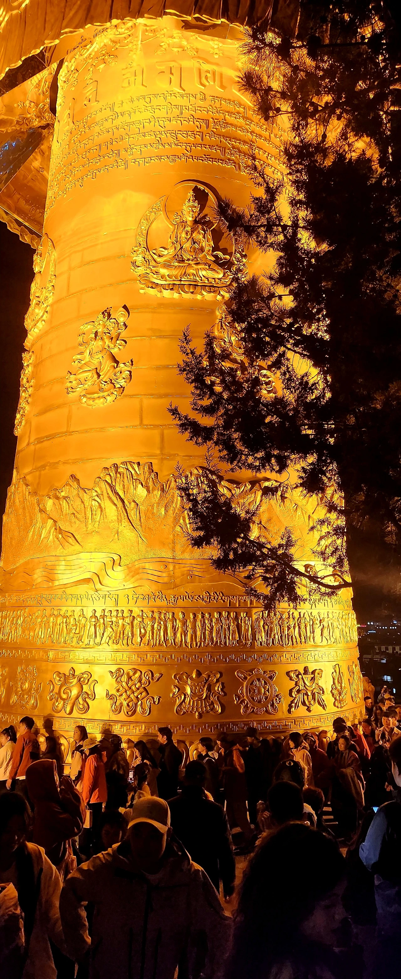 좐진통은 티베트 불교 문화에서 매우 중요한 기도 도구입니다. 통 형태의 원통 안에는 《옴 마니 반메 훔(嗡嘛呢叭咪吽)》 등의 불경이 새겨져 있습니다. 작은 손돌림용부터 사람이 직접 손으로 밀어 돌리는 대형 통까지 크기가 다양하며, 지역 주민들은 하루에도 여러 번 이 기도통을 돌리며 수행합니다. 시계 방향으로 돌리는 것이 원칙. 돌릴 때마다 불경을 한 번 외운 것과 같은 ’공덕‘을 쌓는다고 믿습니다. 샹그릴라에 있는 좐진통은 약 21미터(7층 높이)이며, 세계에서 가장 큰 기도통 중 하나로 널리 알려져 있습니다.