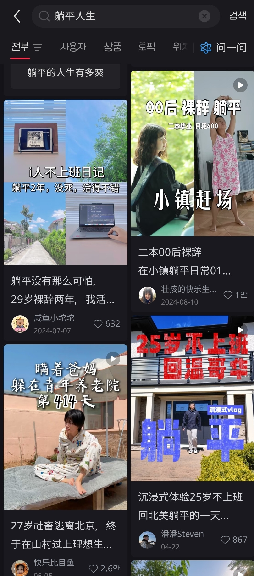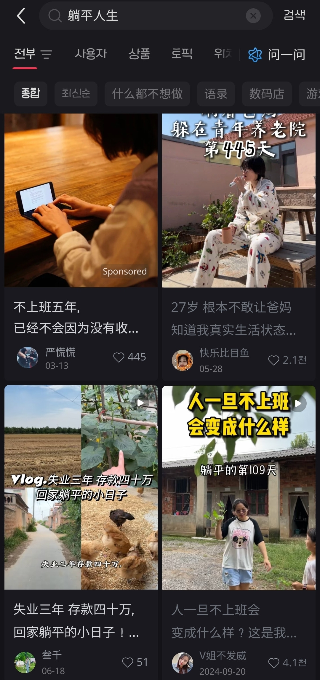 이에 따라 젊은 층 사이에선 ‘백링(躺平, 드러눕기)’이나 ‘네이쥔(内卷, 과잉 경쟁)’ 담론을 통해 현실 회피 또는 체념의 정서를 공유 중입니다.