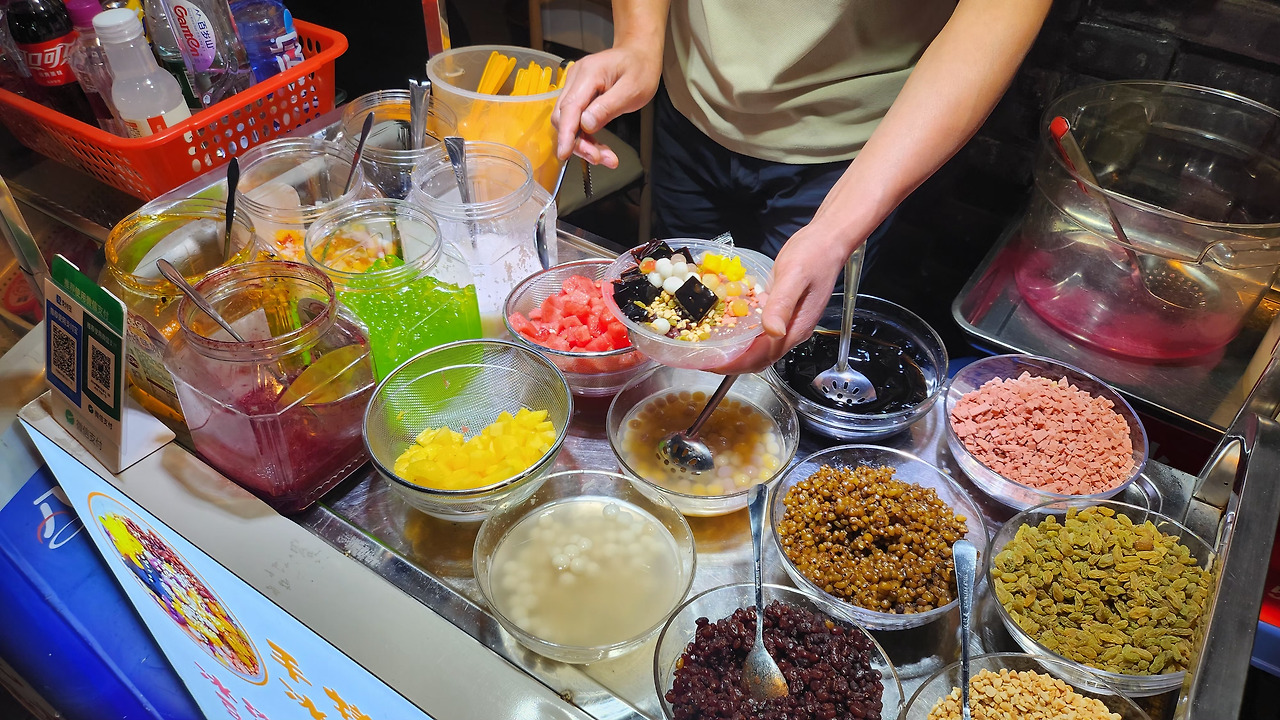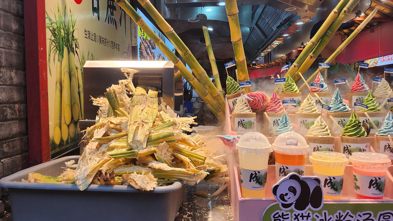 길거리에는 괴식만 있는 건 아니다. 죽순 아이스크림, 달콤한 젤리 빙수, 판다 얼굴 케이크. 이색적이고 달달한 간식들도 행인의 눈길을 끈다. 특히 '마라(麻辣)'의 본고장답게 마라소스를 활용한 특산품을 파는 가게가 즐비하다.
