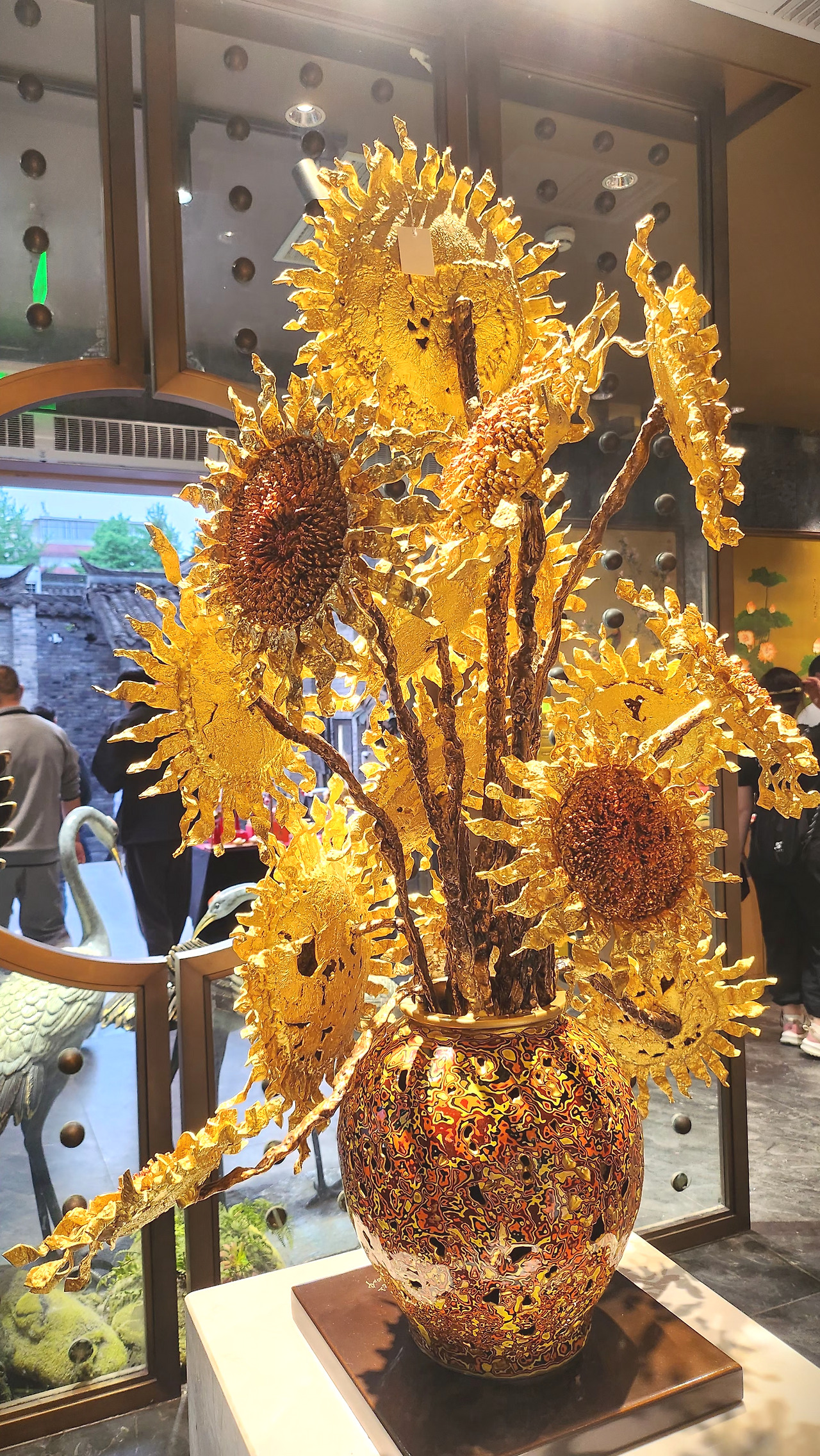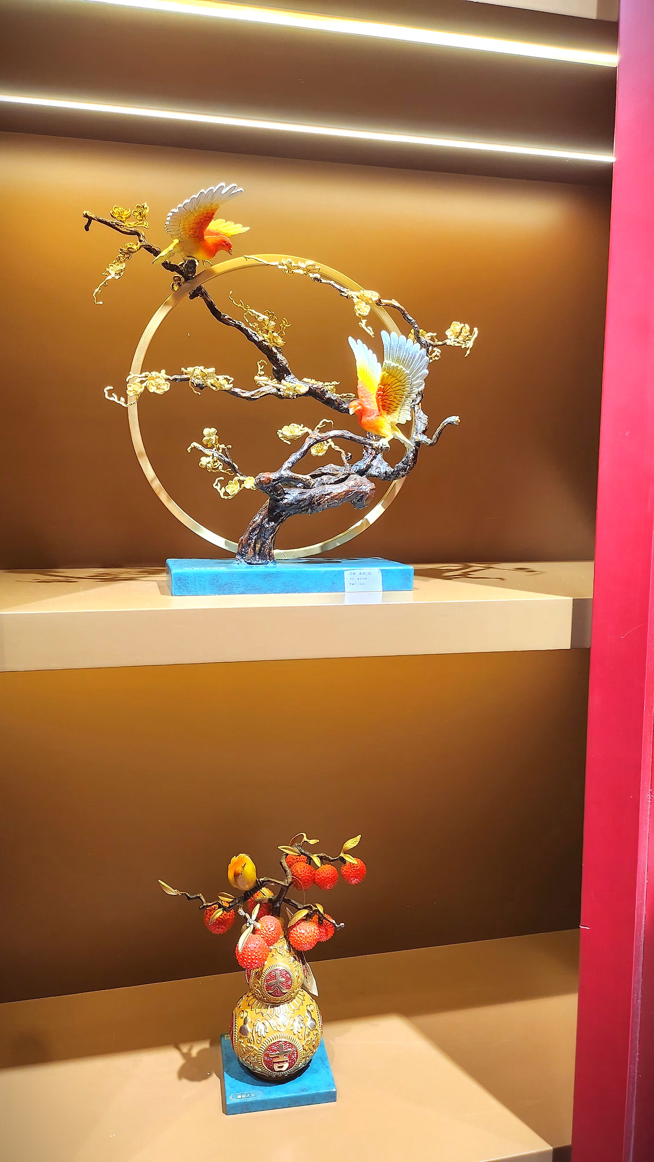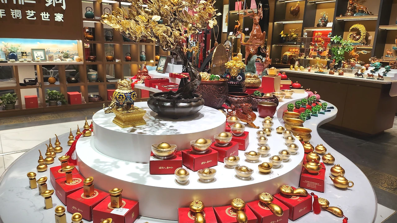 황금 진열장은 가히 압도적이다. 중국 고대 화폐 원보(元宝, 금덩이 모양), 돈나무, 금사슴과 금사자. 손만 대도 값을 물어야 할 것처럼 호사스럽다. 수 억을 호가하는 금빛 재물들에 없던 탐욕도 솟는다.