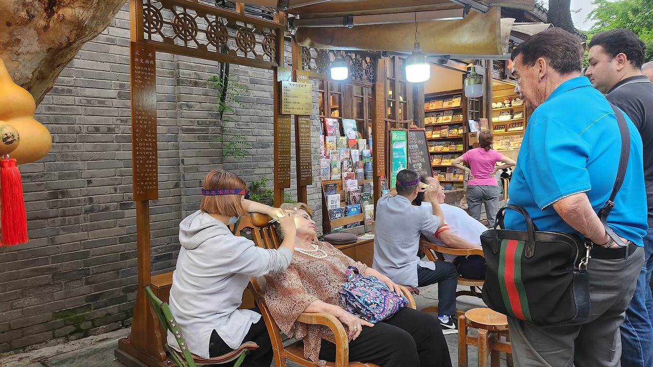 청두에선 다른 도시보다 중국 본연의 생활 문화를 가까이에서 느낄 수 있습니다. 유명한 차이얼(采耳, 귀를 파다) 역시 거리에서 쉽게 만날 수 있습니다. 단순히 귀지를 파내는 것이 아니라 솜털 같은 도구로 살랑살랑 간질이며 휴식을 주는 전통 서비스. 낯설지만 한 번쯤 경험해 볼 만합니다.
