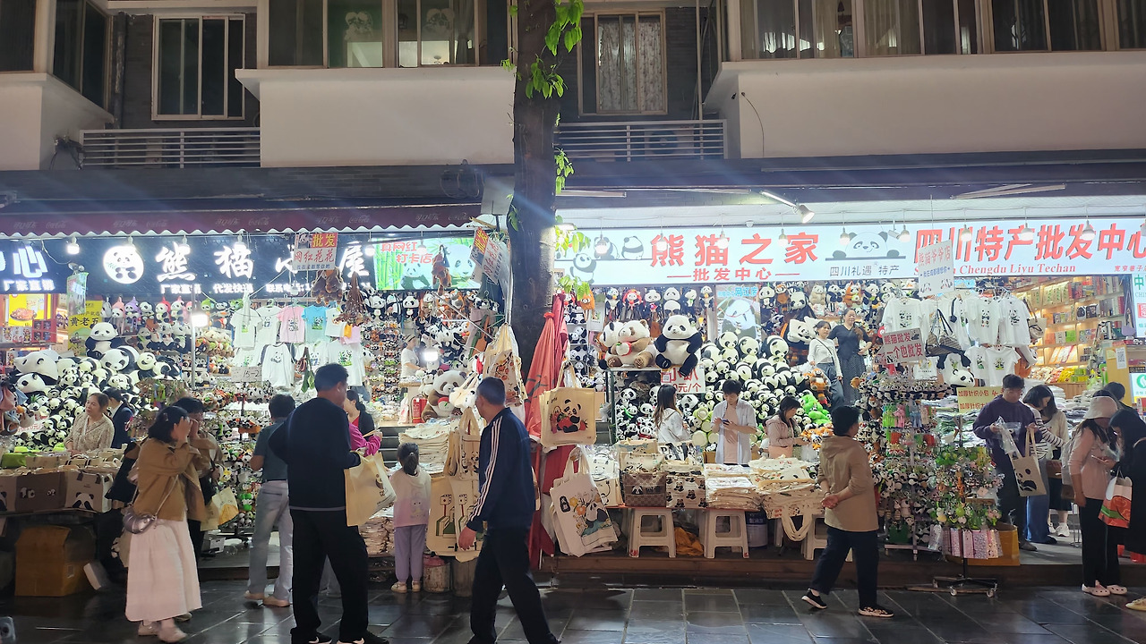 청두의 상징이자 정체성, 판다(熊猫). 도시 어디를 가든 판다 인형, 가방, 머리띠 등이 넘쳐납니다. 판다를 좋아한다면 천국이겠지만, 여행 막바지엔 흰색과 검정만 봐도 판다가 떠올라 피로해졌습니다. 세계 어느 나라를 돌아봐도 이렇게 한 동물 캐릭터를 도시 정체성과 산업 전반에 녹여낸 곳은 드물 거예요.