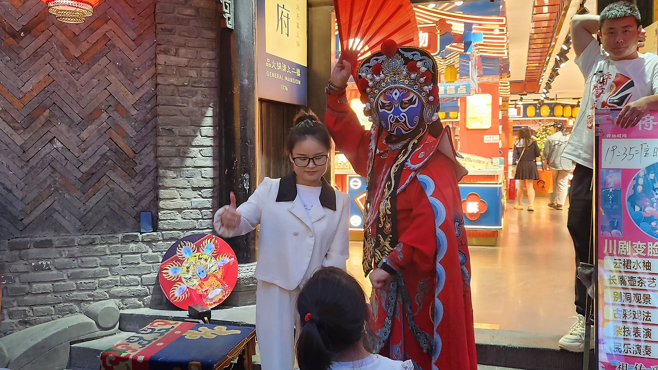 한참 길거리 음식을 즐기다 보니 어느덧 밤이 됐다. 이제 청두의 전통 공연, '천극(川剧, 쓰촨 오페라)'을 관람할 시간이다.