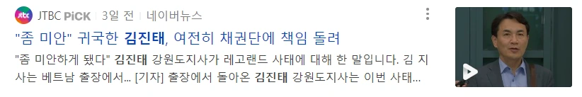 이미 많은 국고가 날아간 뒤, 김진태 지사는 드디어 베트남에서 귀국했다. 나는 정치는 책임의 영역이라고 생각해왔고, 여전히 생각하고 있다. 그래서, 수많은 유명인들과 정치인들이 출마 선언을 할 때, 사회에 대한 봉사와 권한에 대한 책임, 헌신을 이야기 한다. 한 지자체의 수장이라면, 수백만이 살고 있는 지역을 책임지는 사람이라면, 그것도 아니라 우리나라에 대한 애국심이라도 있다면, 우리나라 돈이 수십 조원이 낭비되고, 엄청난 위기를 초래한 사람으로서 일말의 책임감은 느껴야 한다고 생각했다.