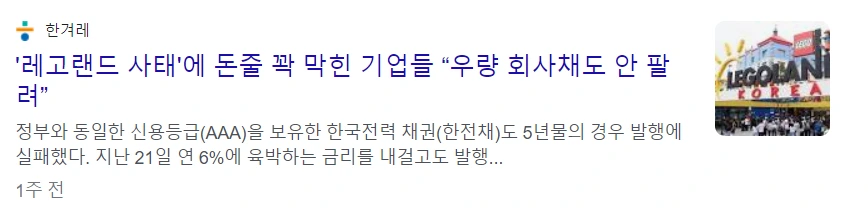그런데, 이 상황에서 레고랜드 사태가 벌어진 것이다. 즉 지방채가 부도가 난 것이다. 지방채가 부도가 나게 되면, 그것보다 신뢰성이 낮은 회사채는 누가 거들떠 보겠나.. 지금 신뢰성 AAA, 6%금리의 한국전력, LG유플러스, 효성 같은 대기업도 회사채를 절반도 못 파는 상황이었다. 채권시장이 필요한 돈의 절반정도밖에 빌려주지 않는다. 중소기업은 사실상 아무도 돈을 안 빌려준다고 봐야하지 않을까.