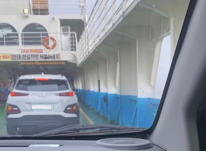 그래서, 그럴 수없었다. 우리는 개를 뒷좌석에 그대로 싣고 육지에 왔다.